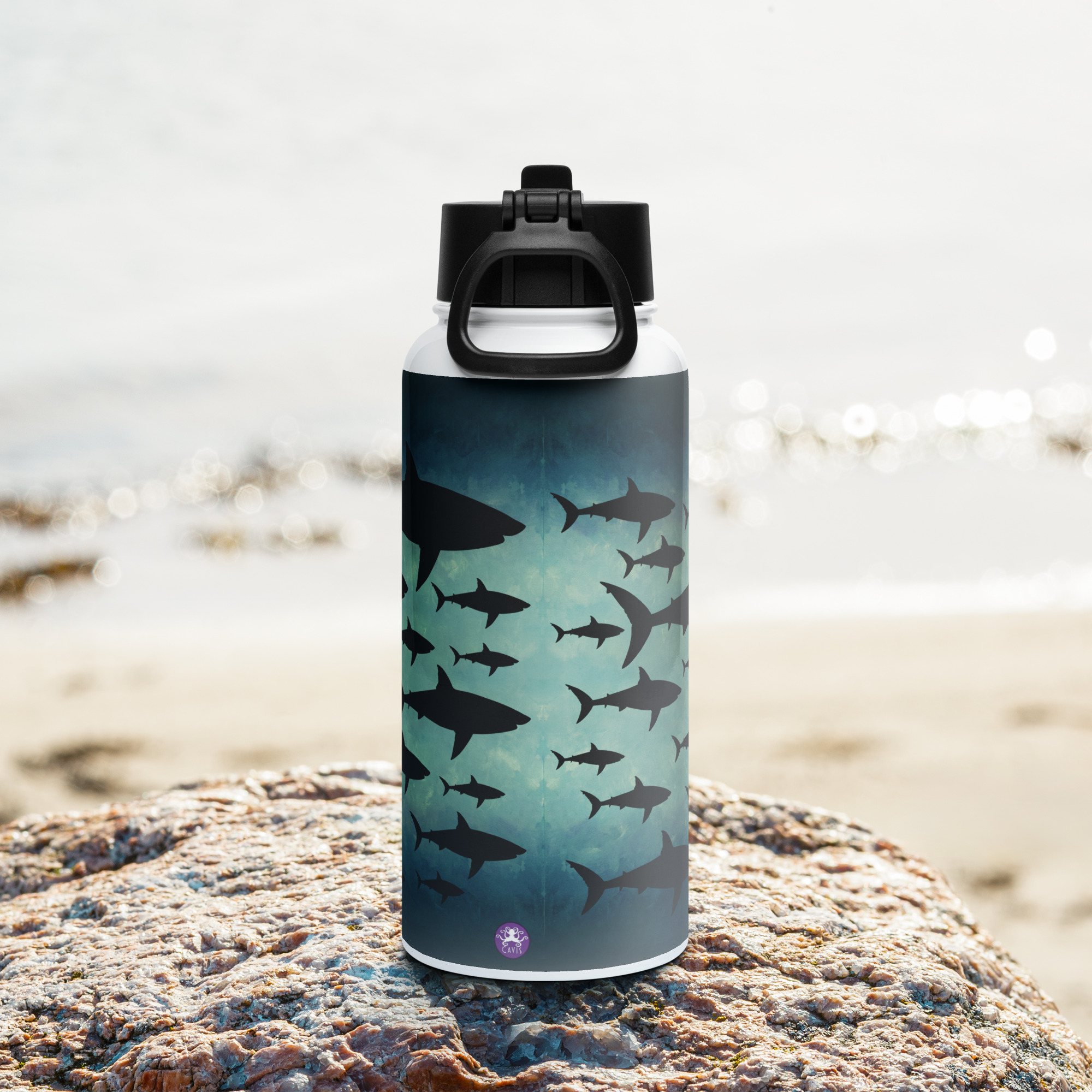 CAVIS a Shark Stainless Steel Water Bottle with a Straw Lid