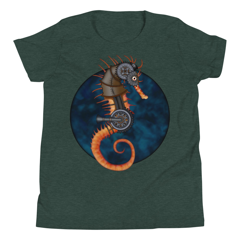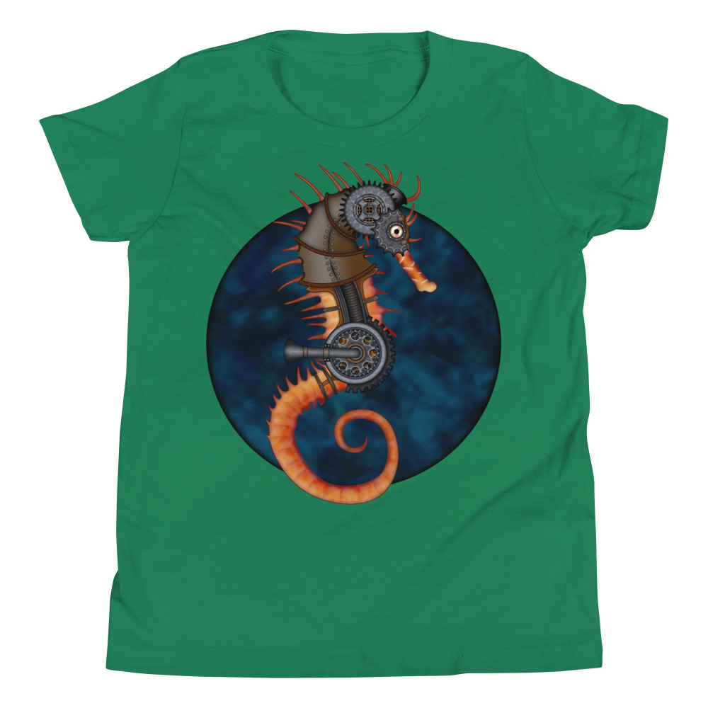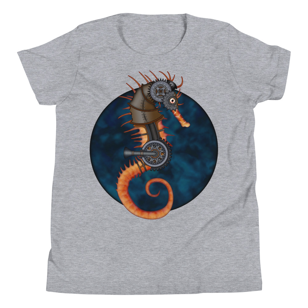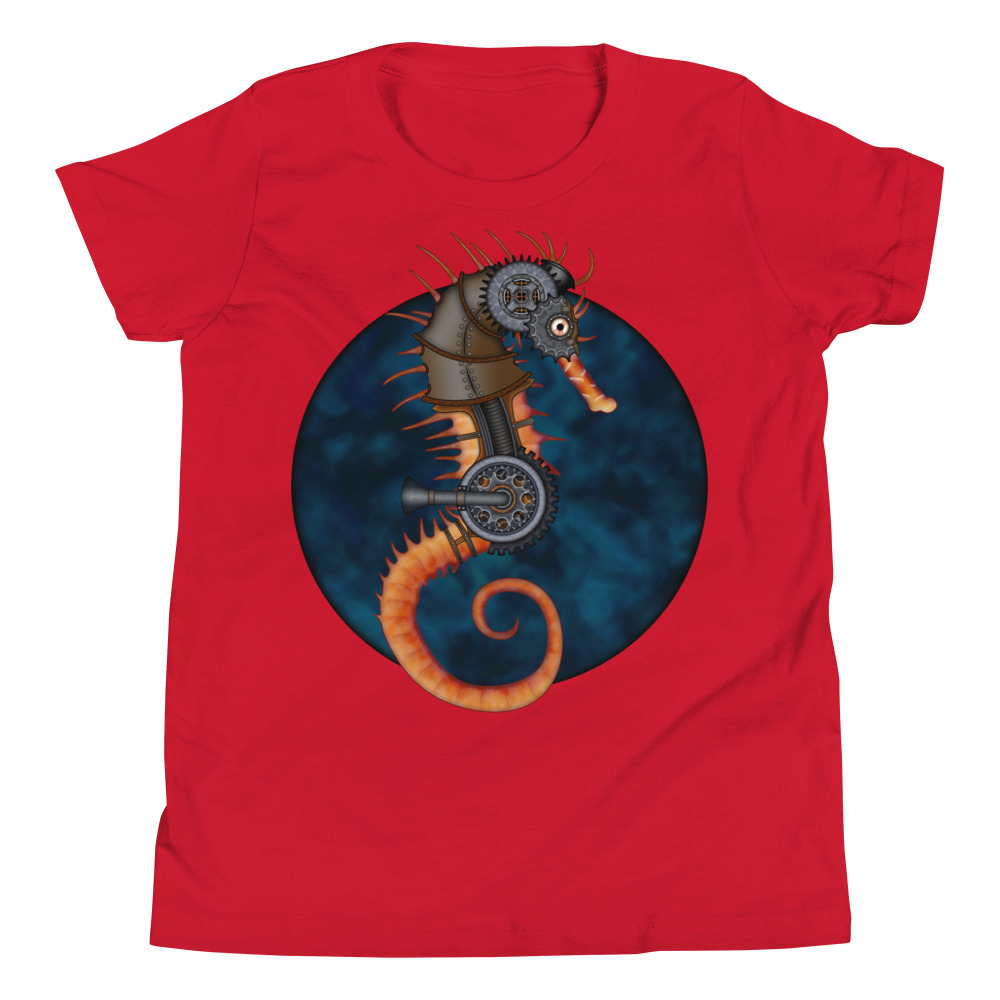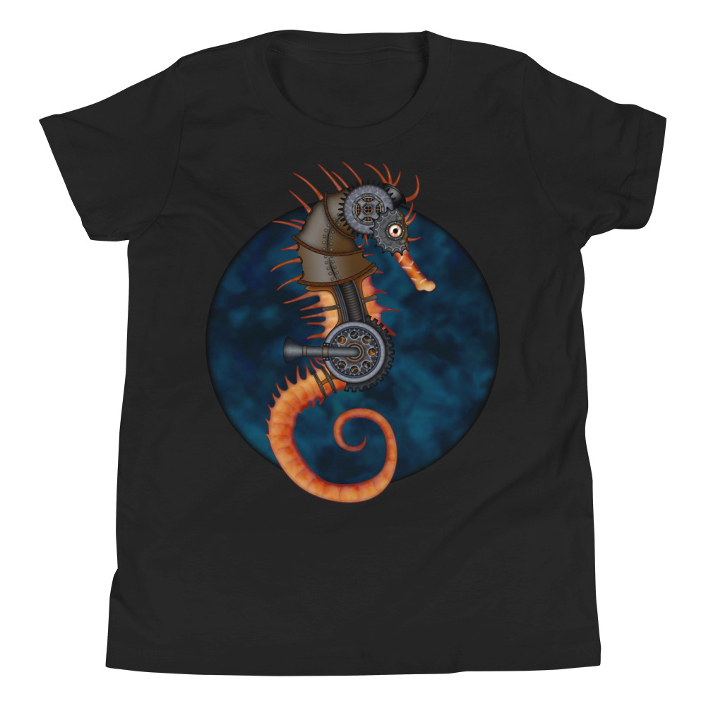 CAVIS a Steampunk Seahorse Youth Short Sleeve T-Shirt, Sci-fi Cosplay Cyberpunk Shirt