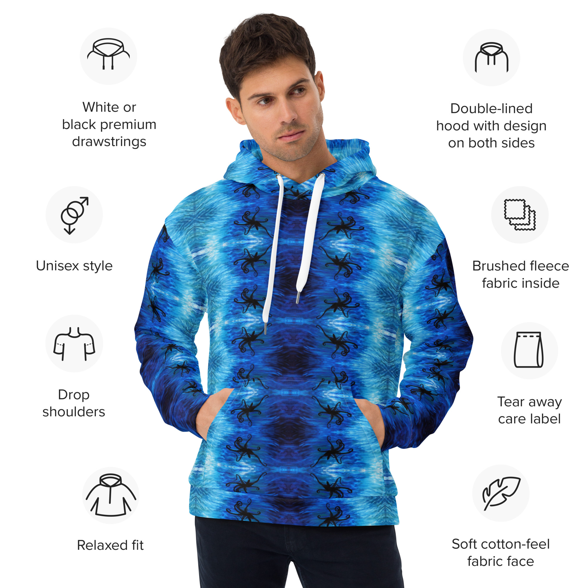 This comfy unisex hoodie has a soft outside with a vibrant print, and an even softer brushed fleece inside. The hoodie has a relaxed fit, and it’s perfect for wrapping yourself into on a chilly evening.