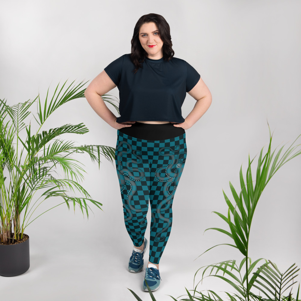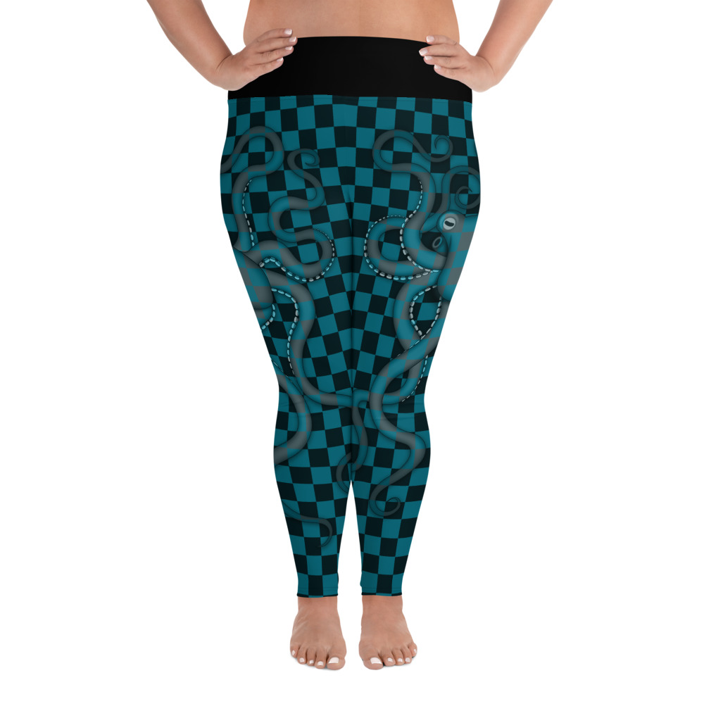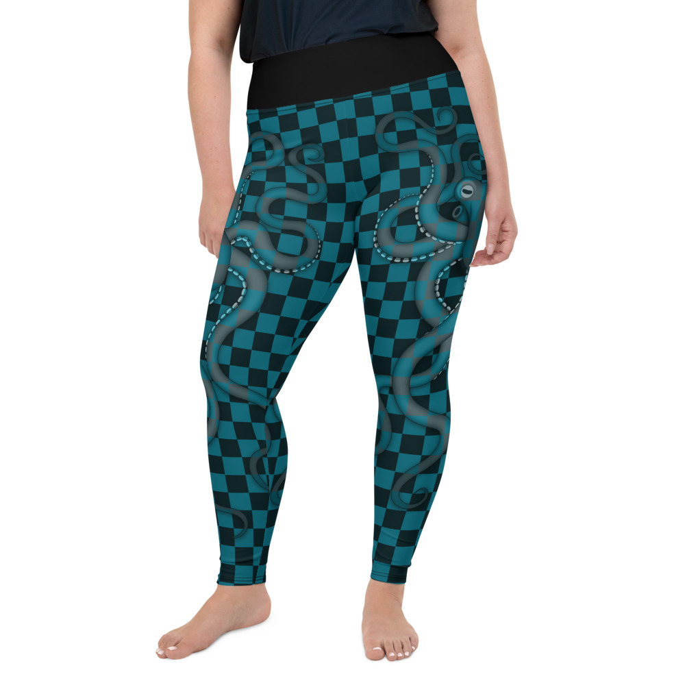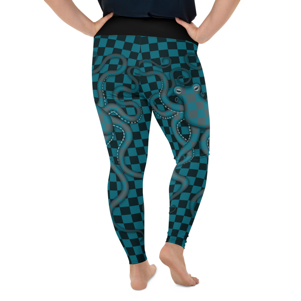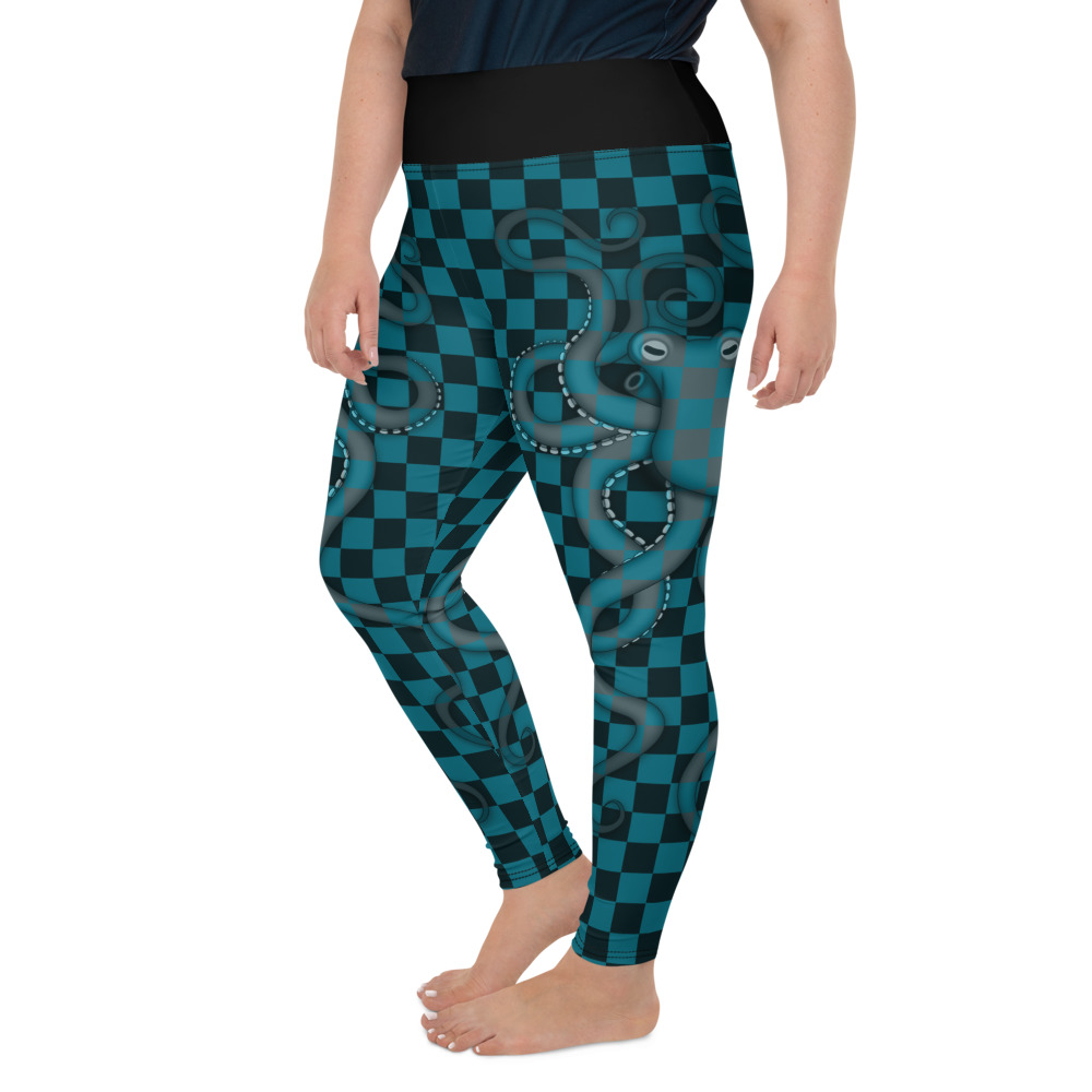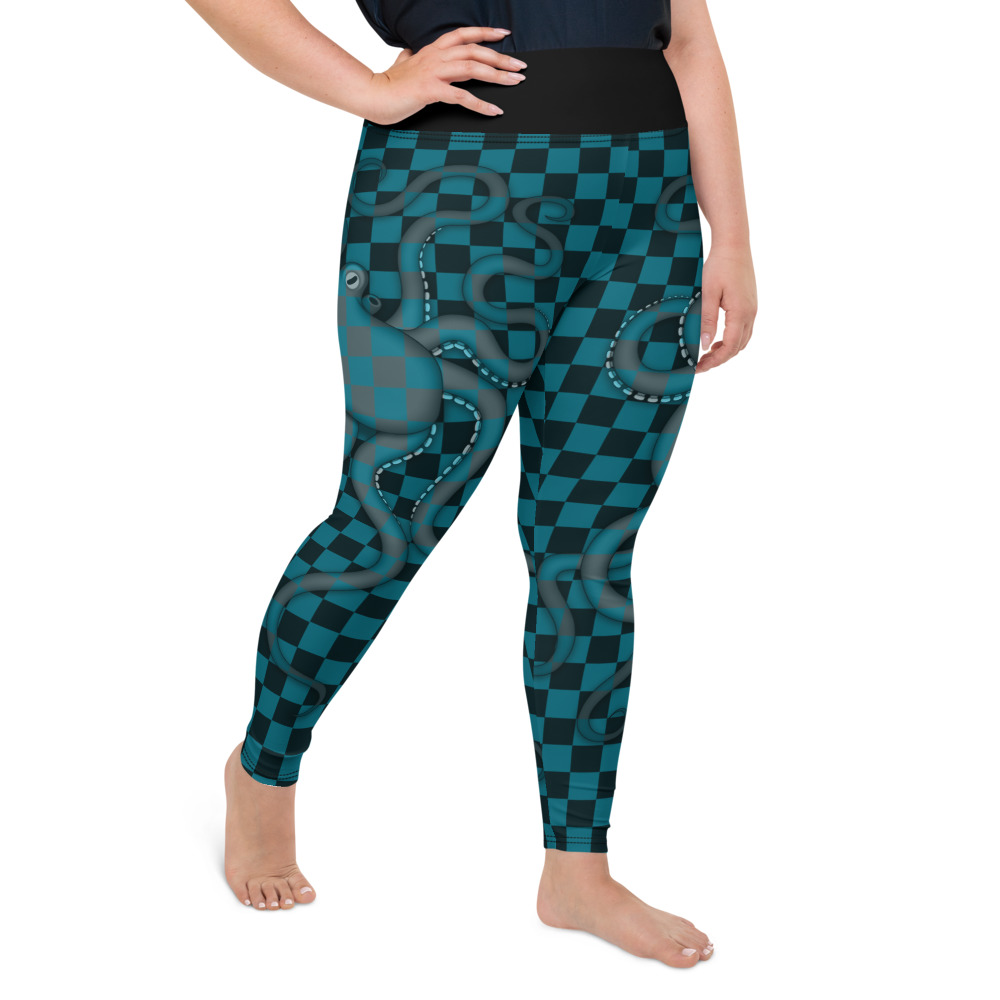 CAVIS Checkered Camouflage Octopus Plus Size Leggings, Retro 80’s Style Dive Skin Yoga Pants