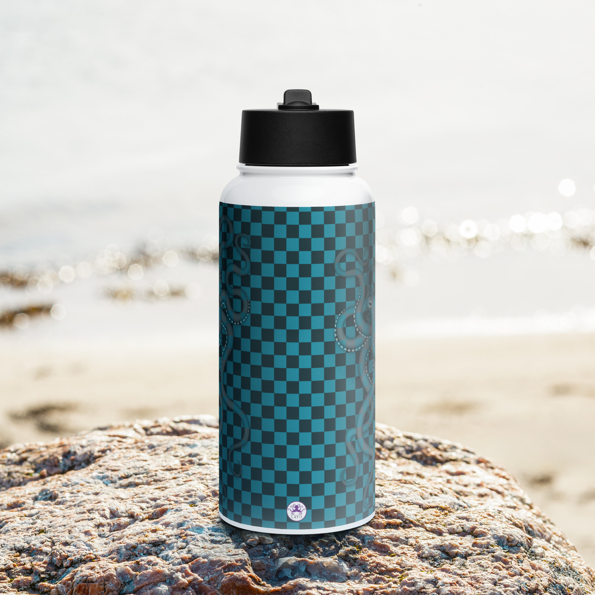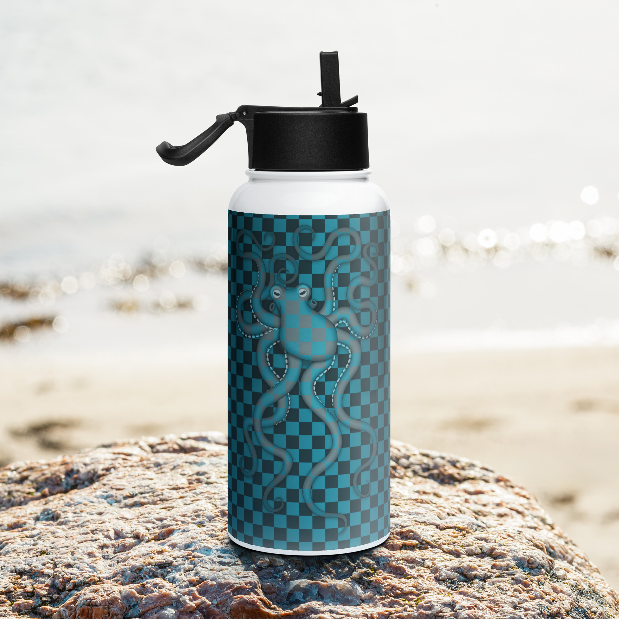 CAVIS Checkered Camouflage Octopus Stainless Steel Water Bottle with Straw Lid, Retro 80’s Dive Gear