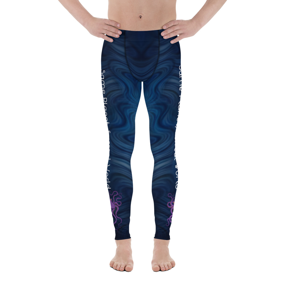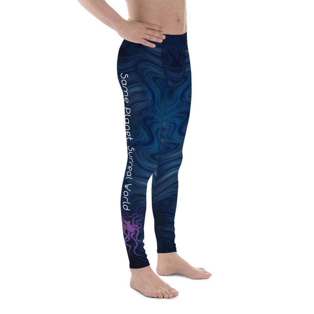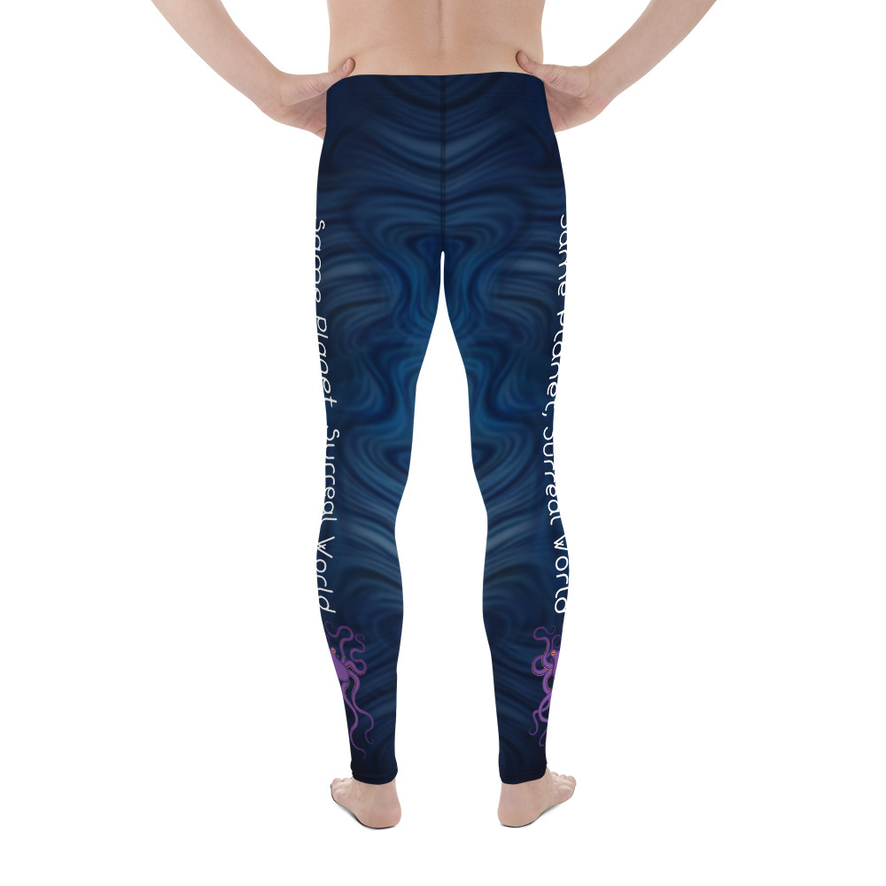 Be your best active self in these men’s purple octopus Surreal World leggings! The super soft and stretchy material makes them the perfect choice for a variety of activities, and you can wear them on their own or under shorts. The leggings are bound to become your favorite workout apparel!