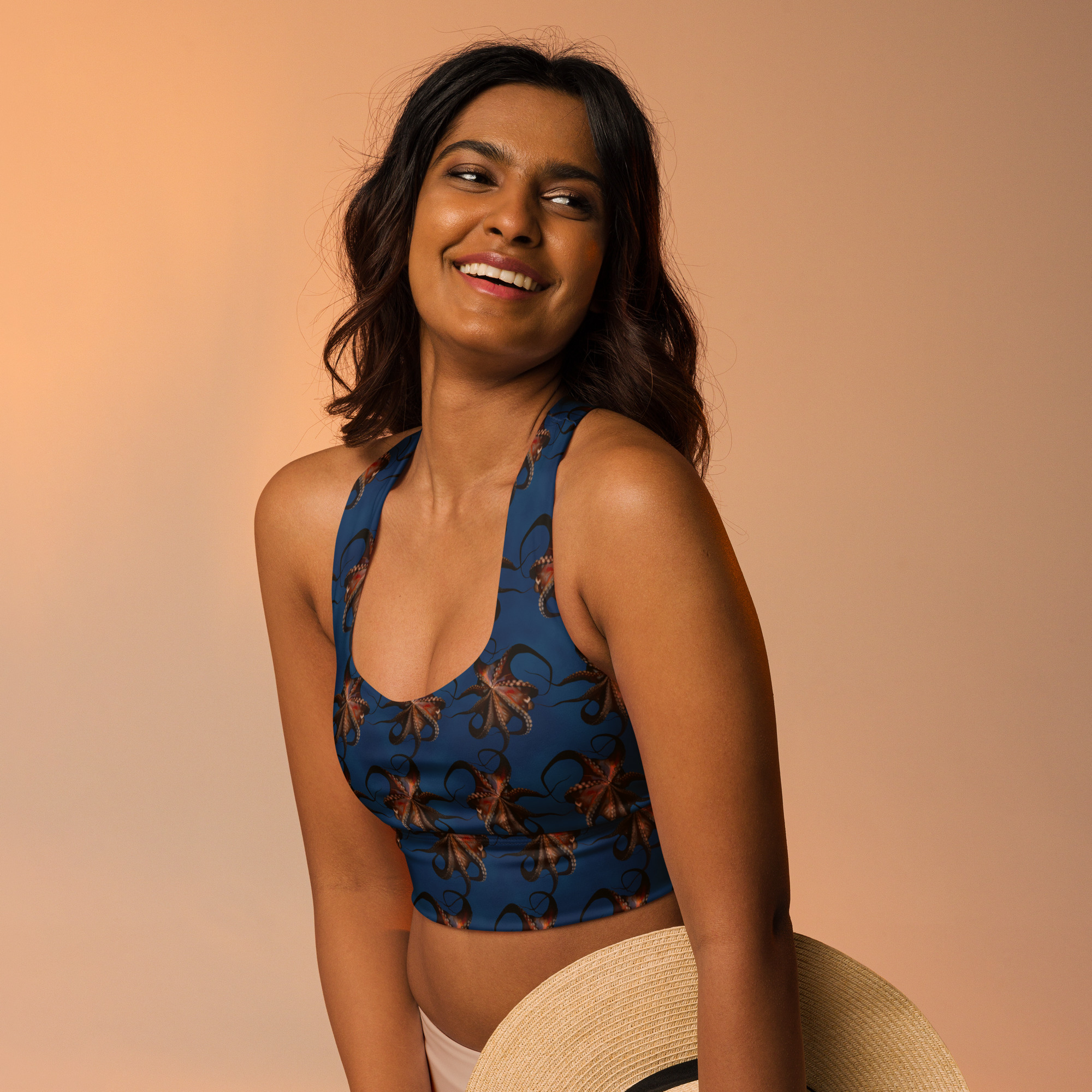 CAVIS Flying Octopus Longline Sports Bra, Alternative Nautical Swimsuit Top, Tankini
