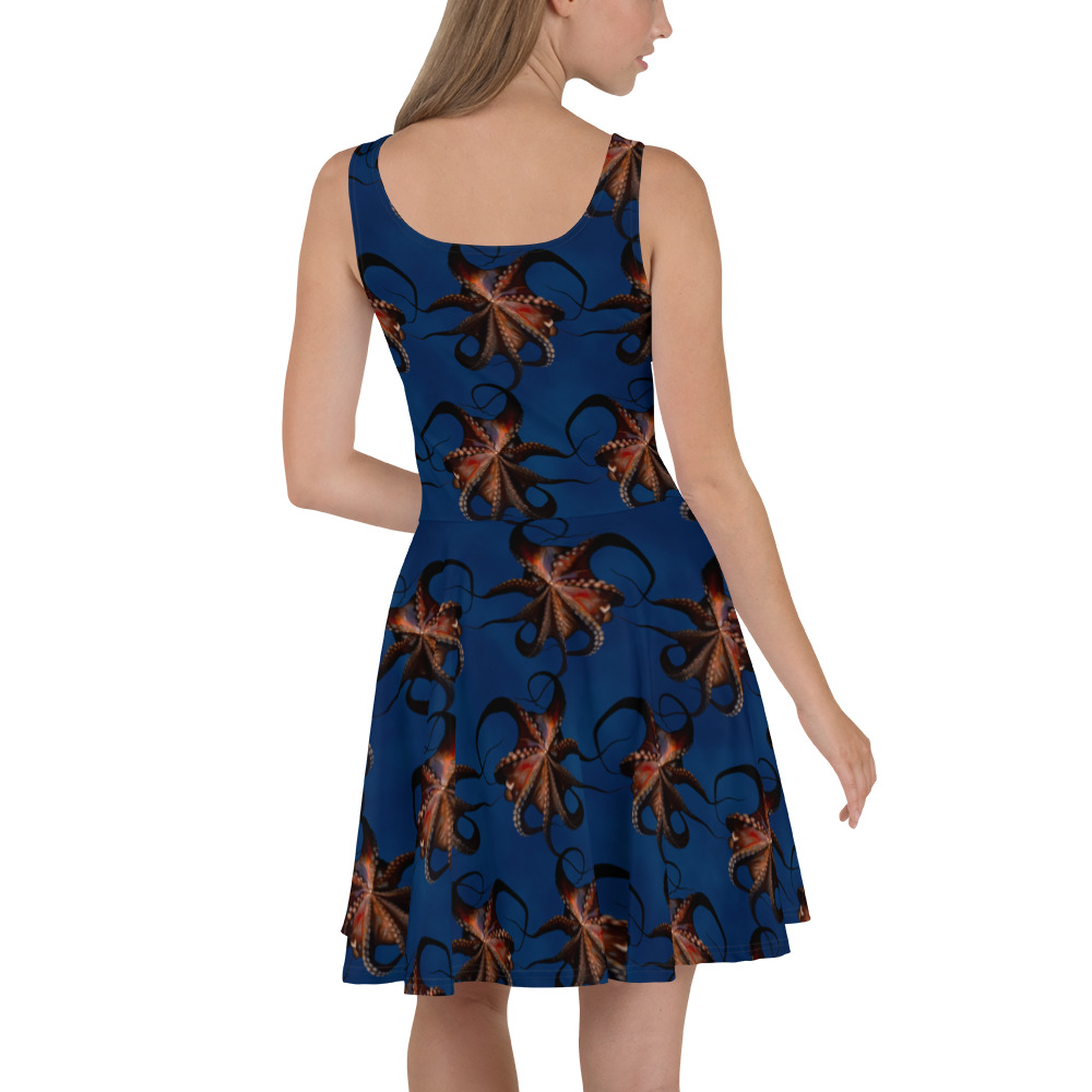 Dress to impress with this sleeveless octopus dress! The soft fabric and flared skirt give it an elegant twist that brings out the intricate design with a beautiful vibrancy.