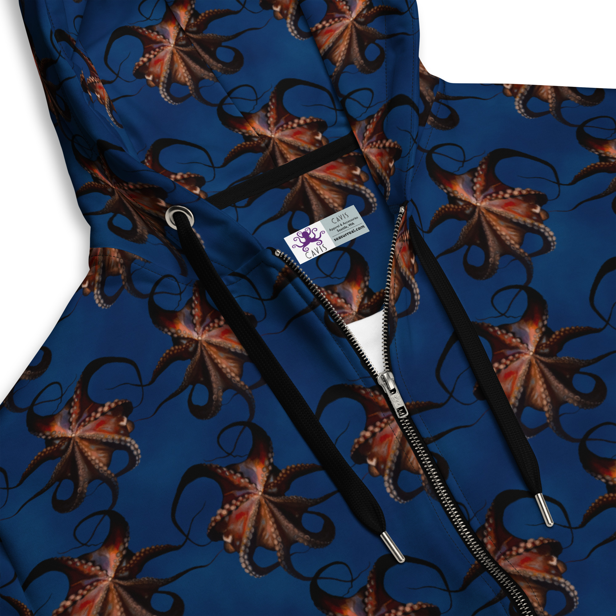• Premium drawstrings and zipper with metal details