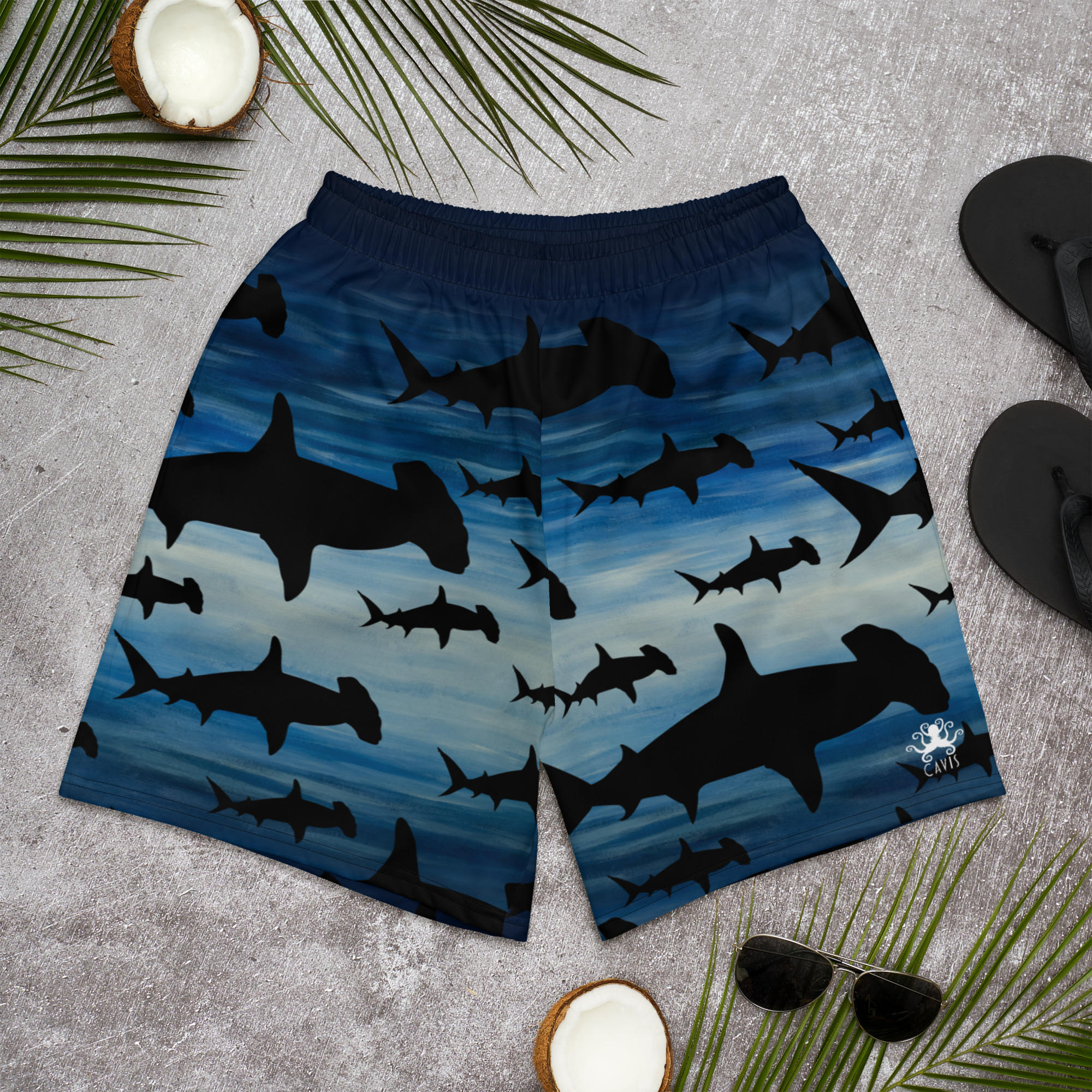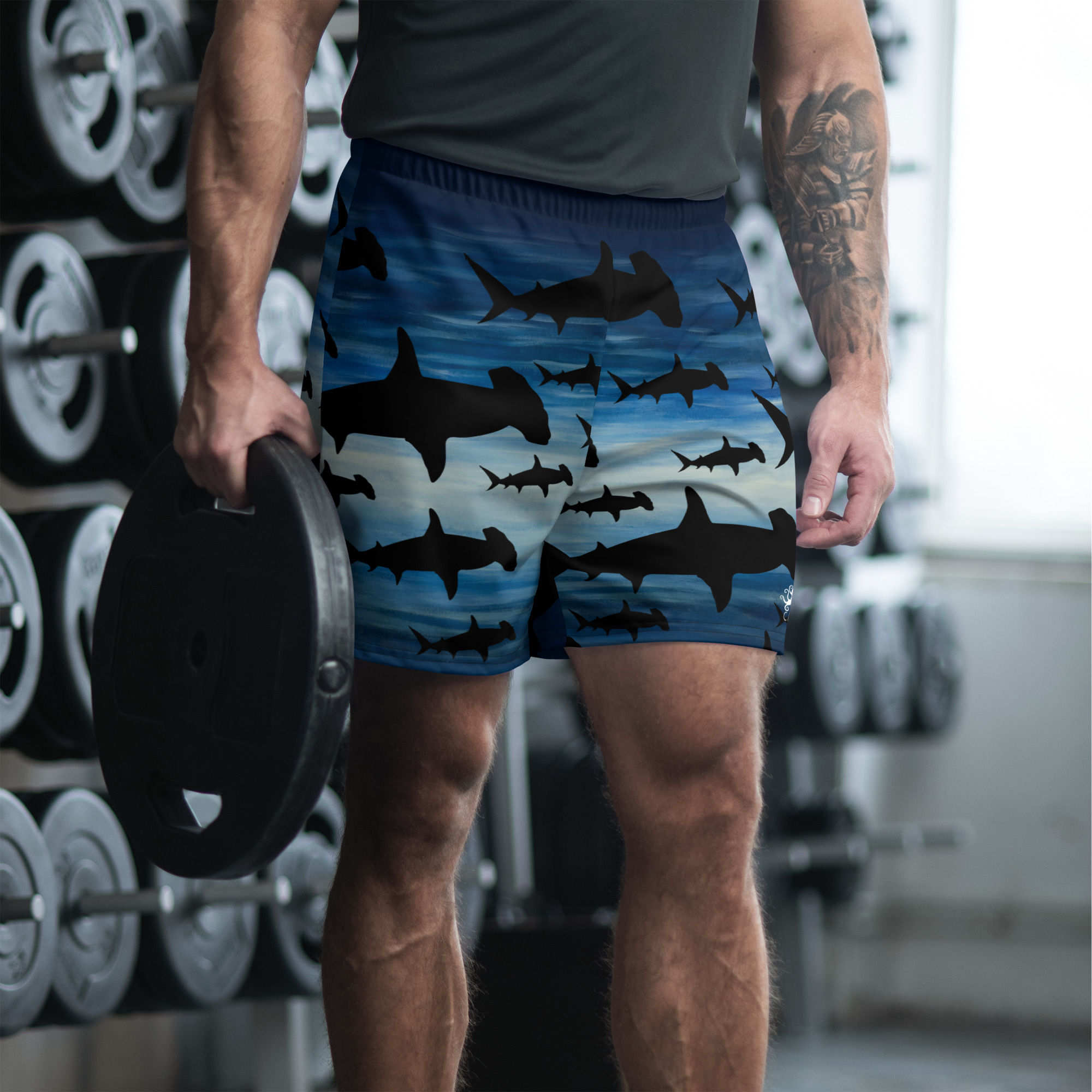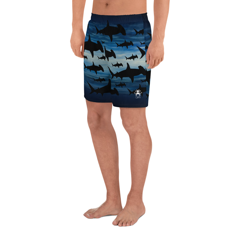CAVIS a Shark Pattern Hammerhead Men’s Athletic Long Shorts, Unique Underwater Sea Life Shorts