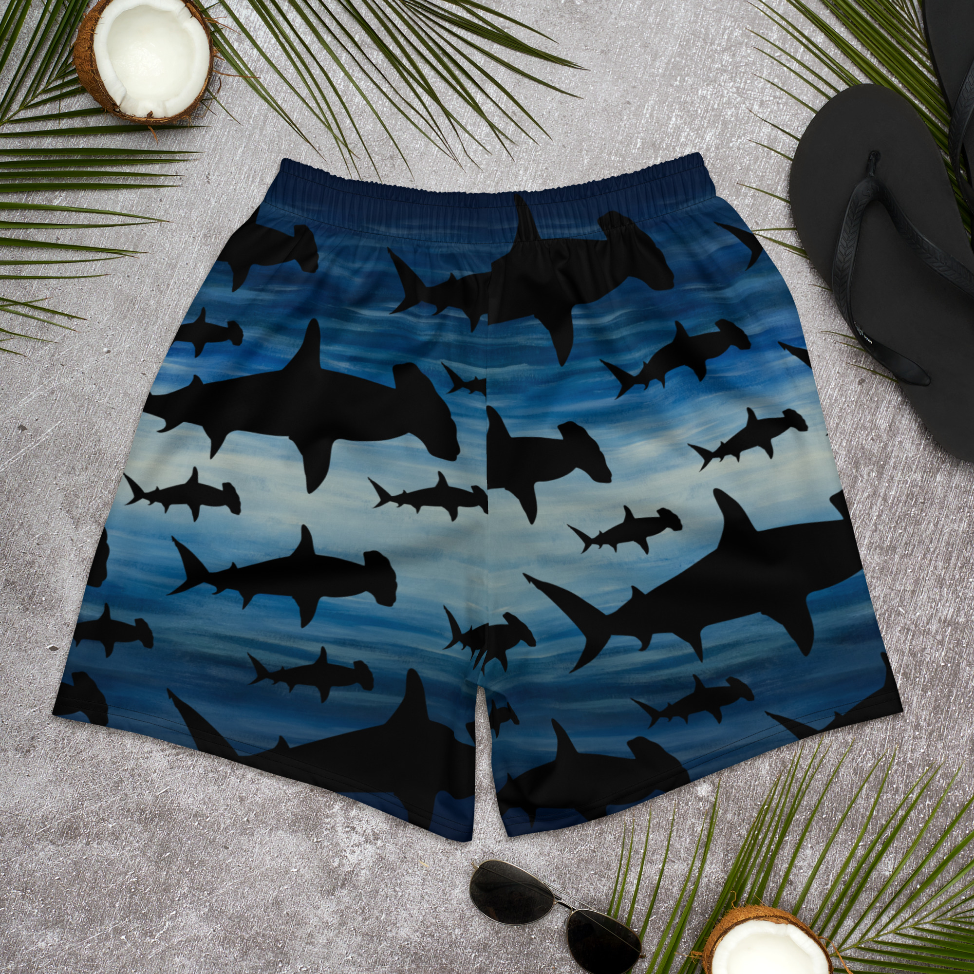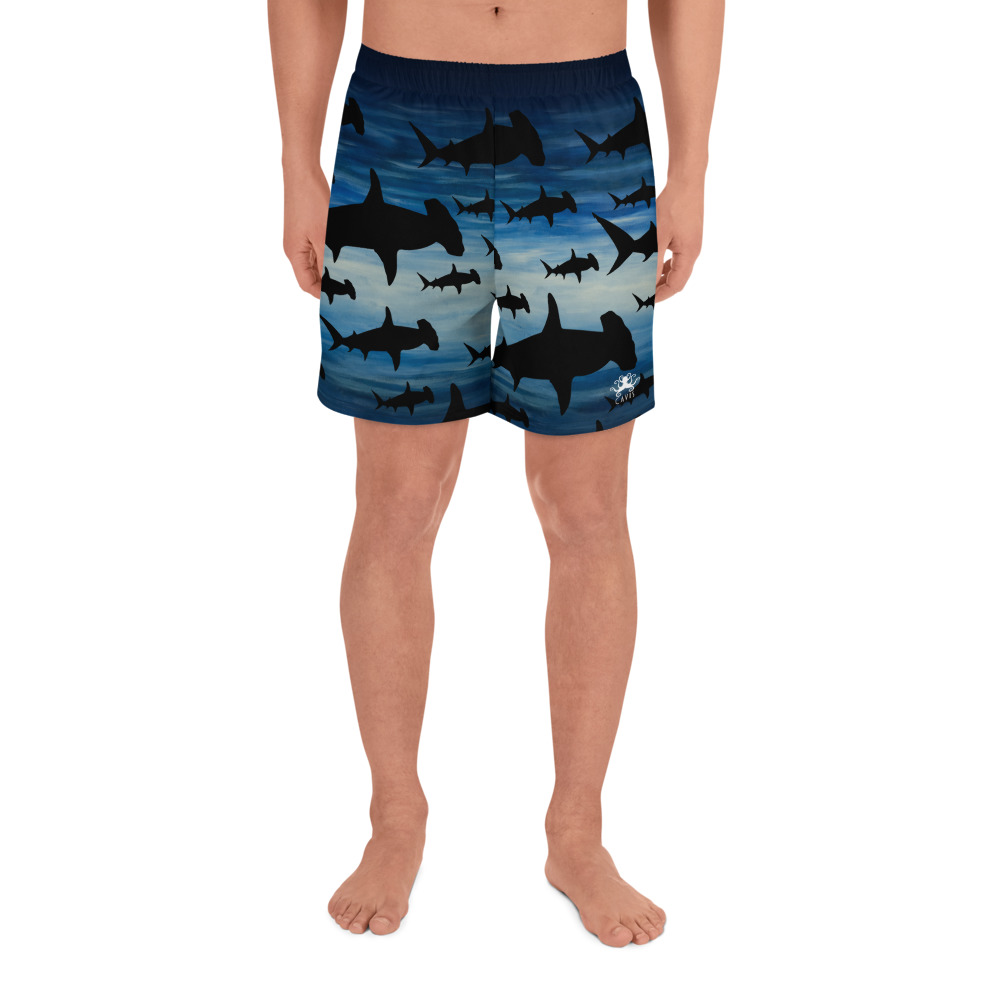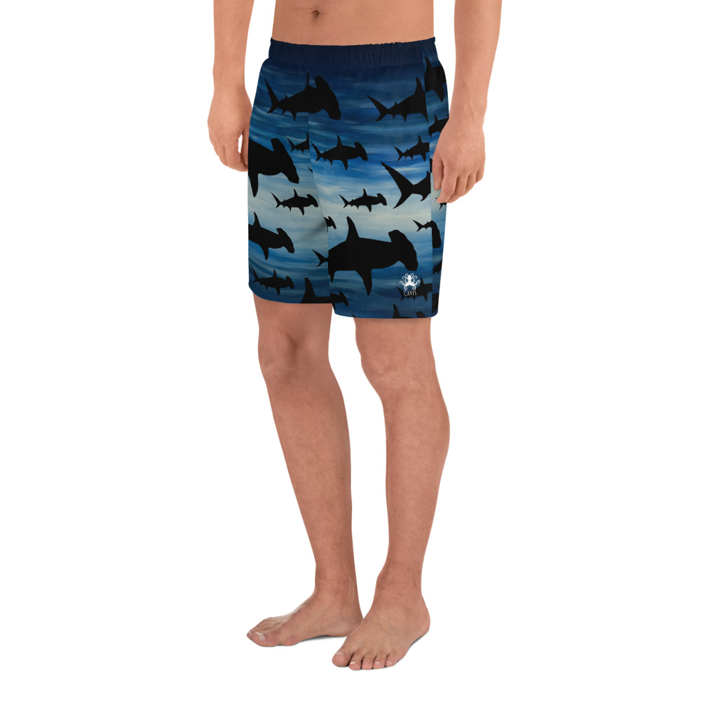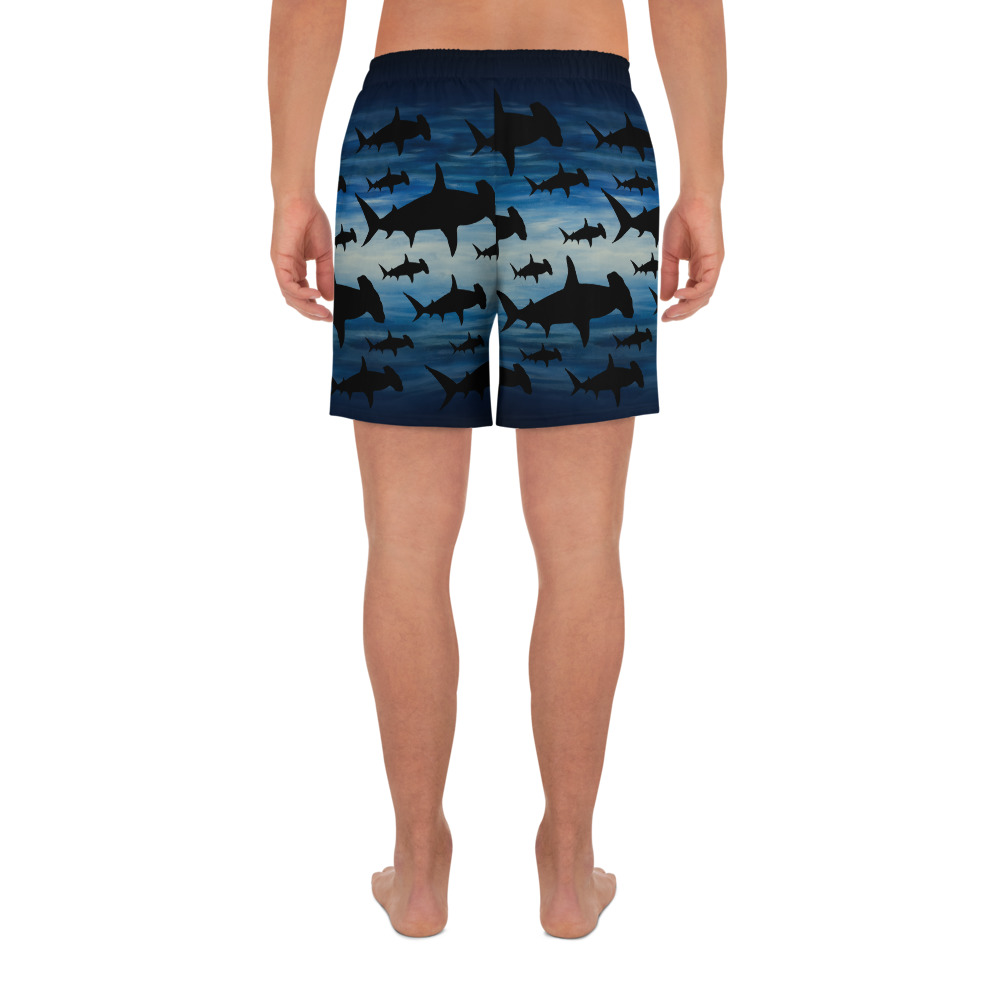 CAVIS a Shark Pattern Hammerhead Men’s Athletic Long Shorts, Unique Underwater Sea Life Shorts