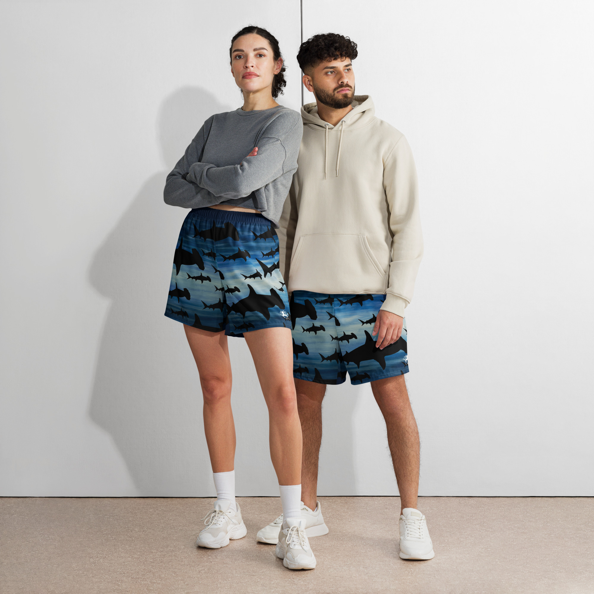Check out these cool hammerhead shark shorts! Going for a run? Out on a dive boat? Perhaps both? Sports outfits can be a lot of hassle, but with these long shorts there’s no need for that. Just throw on a pair and go running, swimming, weight-lifting, or participate in any other activity that pops in your mind. These athletic men’s short shorts are so comfy and made from such a versatile fabric that you won’t feel out of place at any sports event. And, of course, they have pockets. Need we say more? Grab a pair now! Great for boating, scuba divers, stand-up paddle boarding, sports, yoga, running, aerobics, and other athletics.