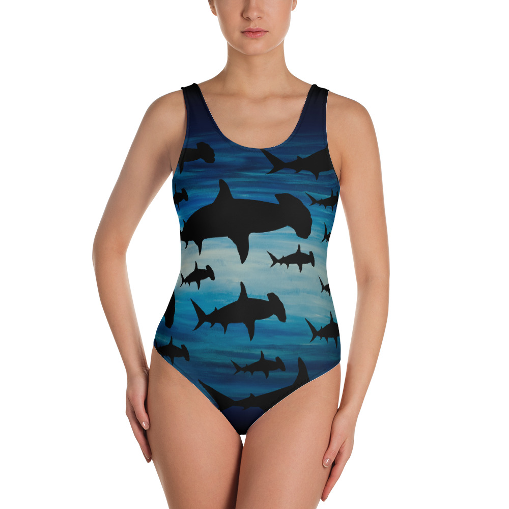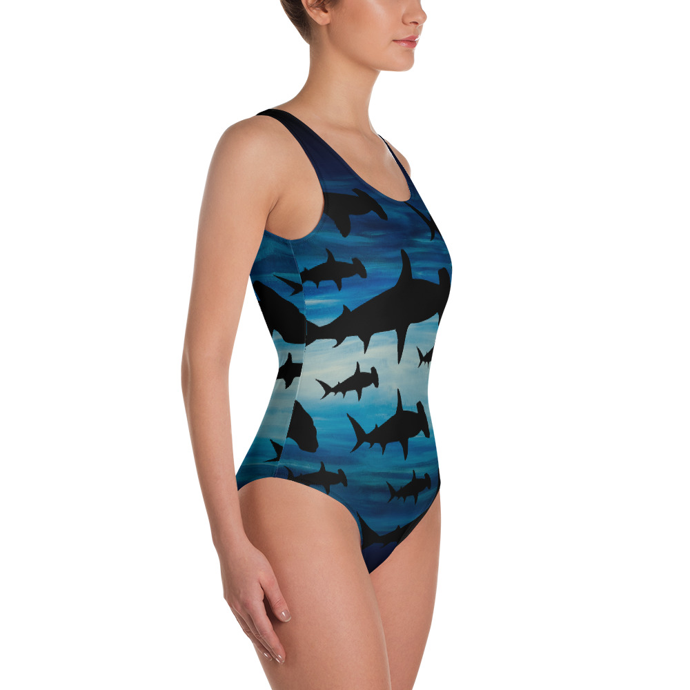This cool hammerhead shark swimsuit is great for all figures and will bring out your best features. Enjoy the smooth fabric and the flattering design, and show it off out in the ocean or by the pool! It’s also nice for dive boats so you can look good between dives then it will stay put when putting on your wetsuit! Also great for other water sports like swimming, diving, snorkeling, surfing, skiing and wake boarding.