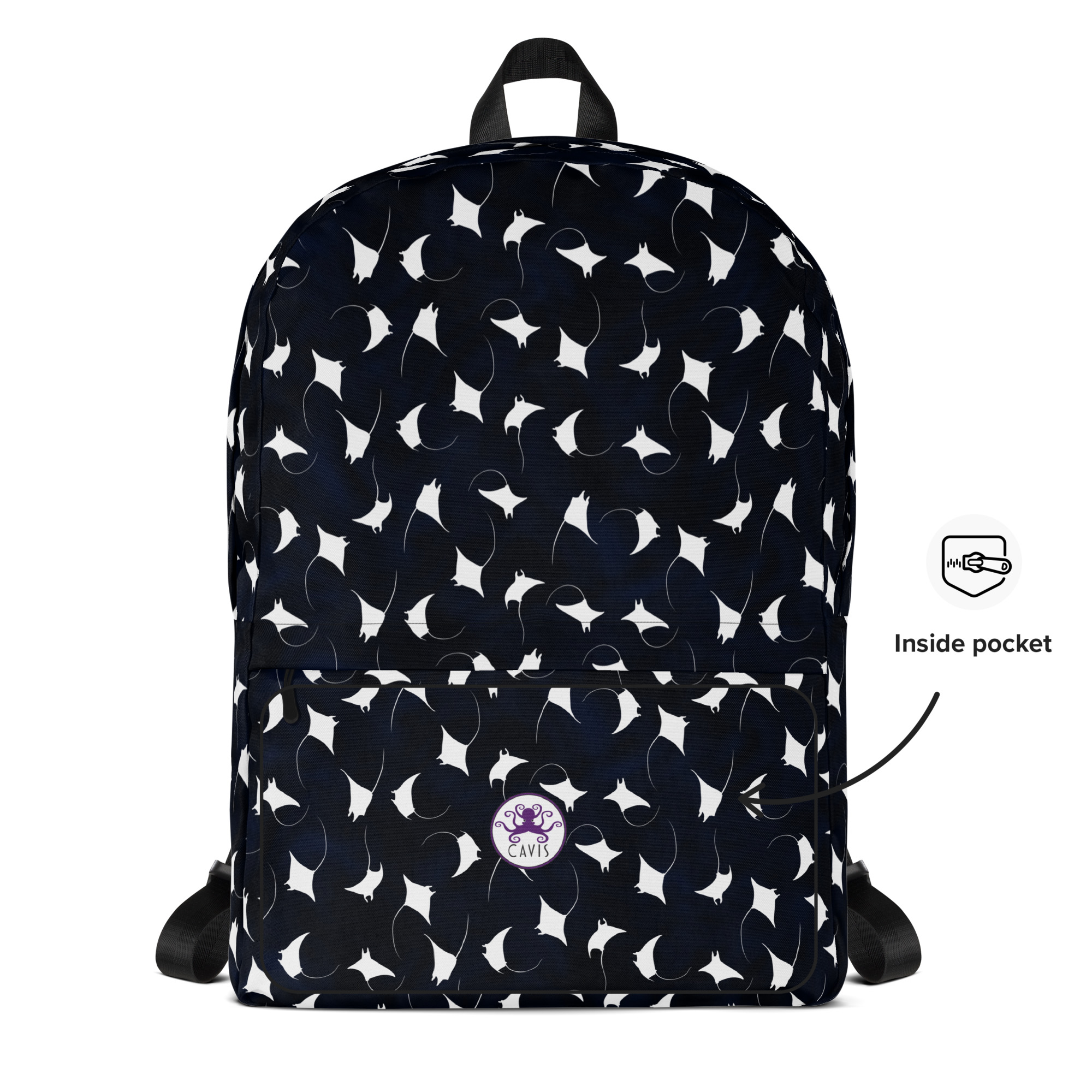 • Large inside pocket with a separate compartment for a 15” laptop, front pocket with a zipper, and a hidden pocket with zipper on the back of the bag