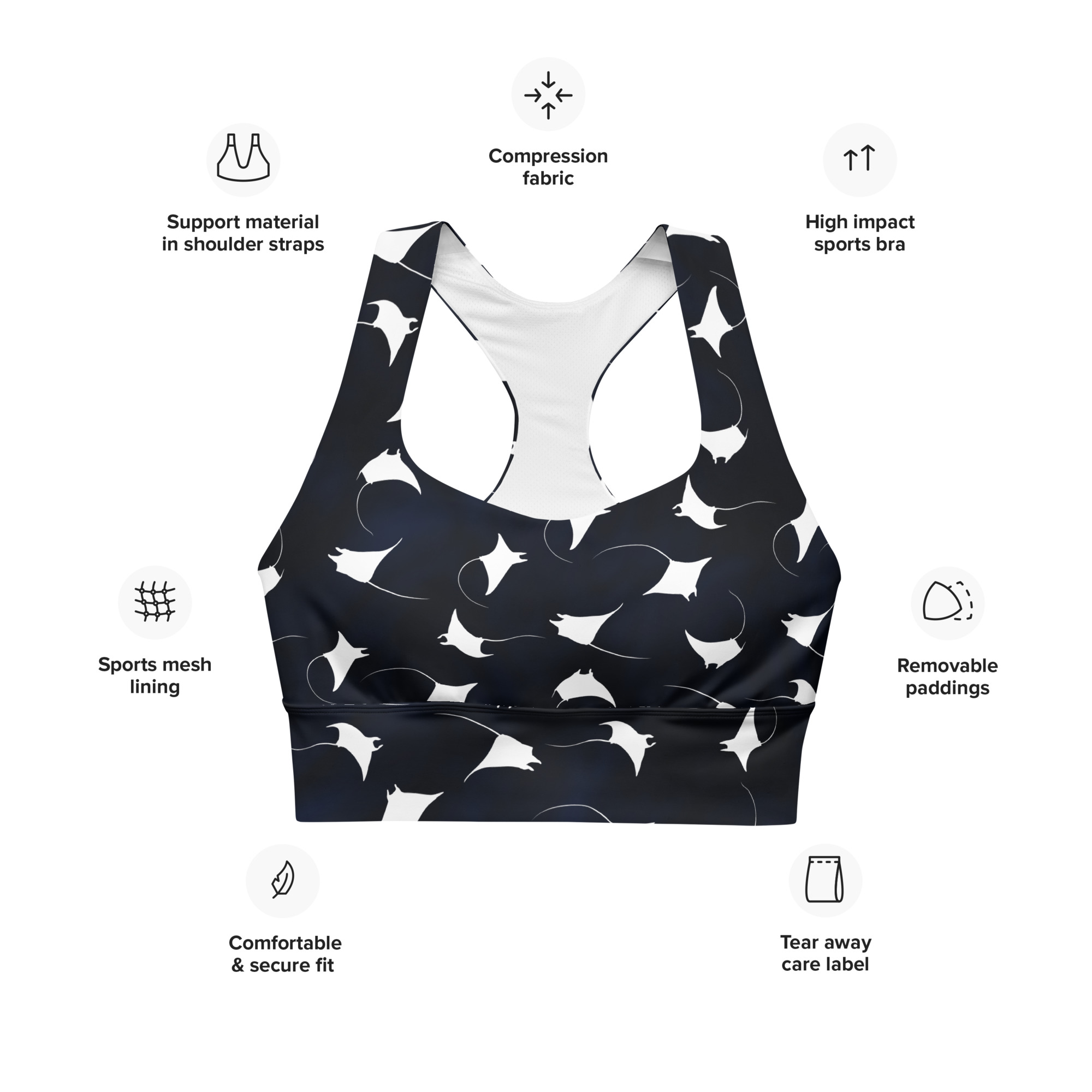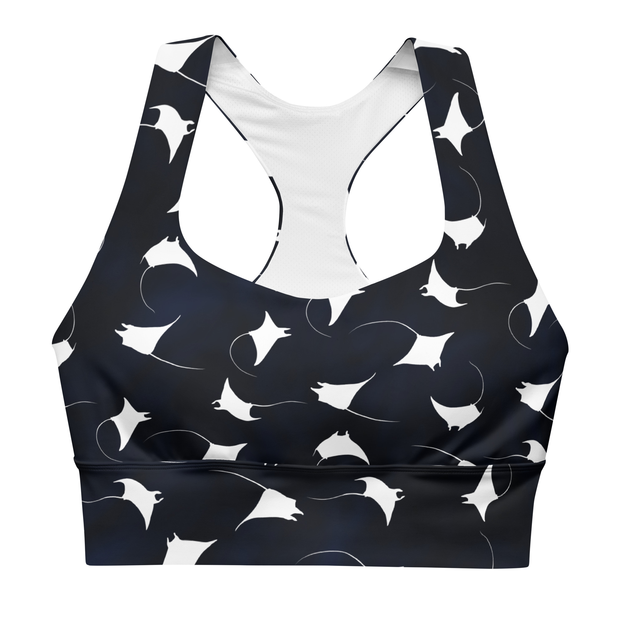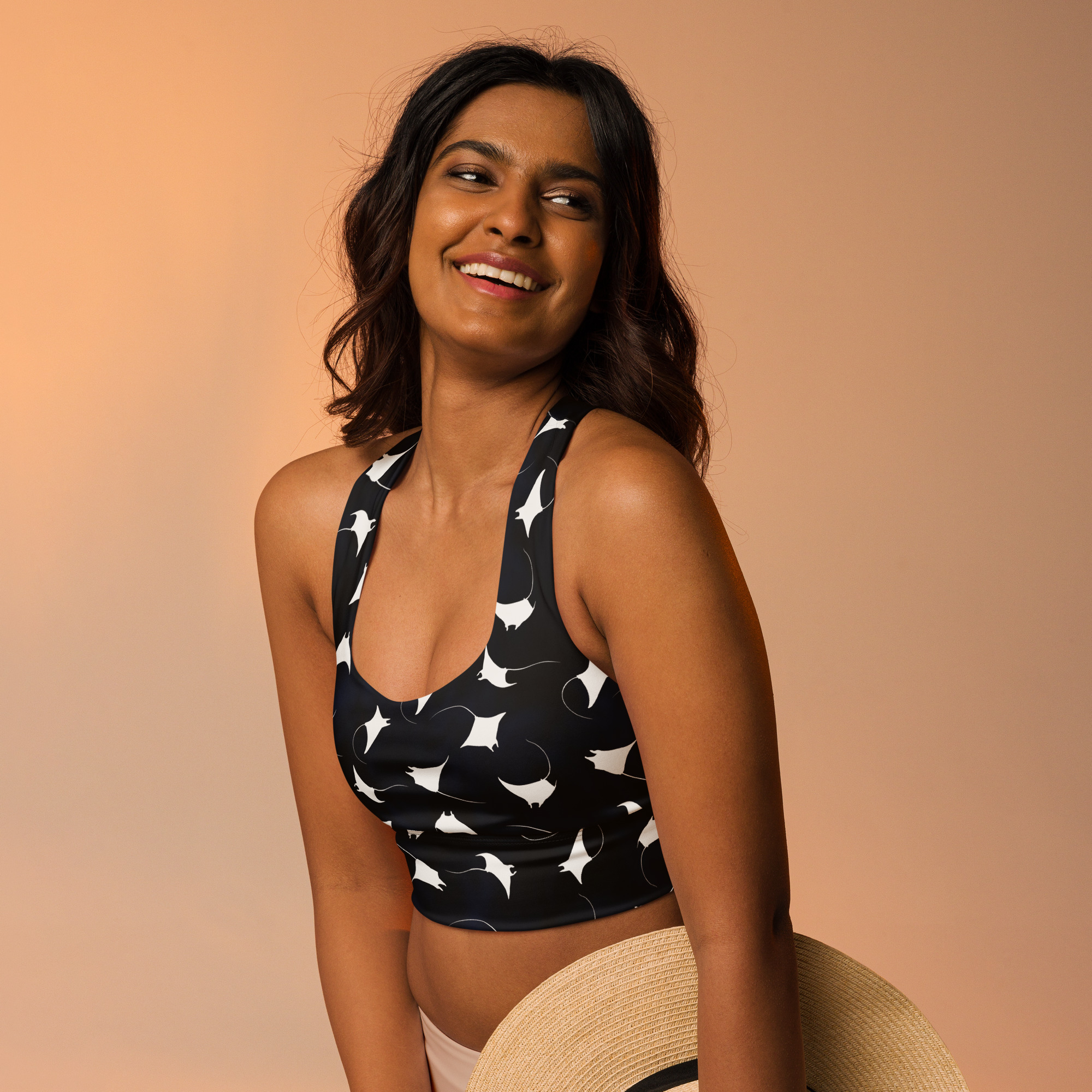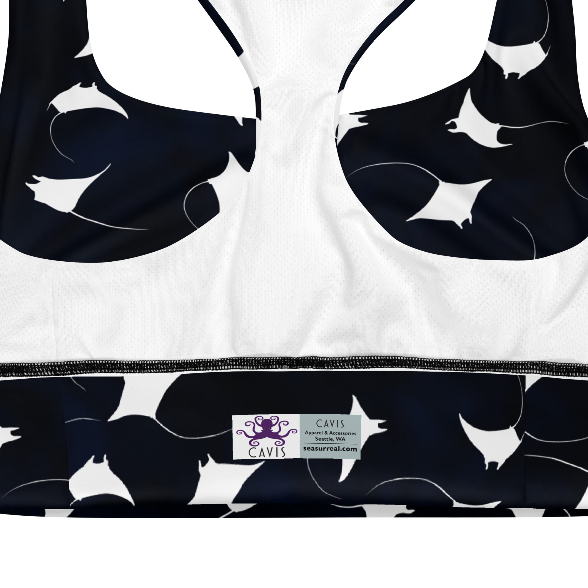 CAVIS Mobula Ray Longline Sports Bra, Alternative Devil Rays Swimsuit Top, Manta Ray Tankini