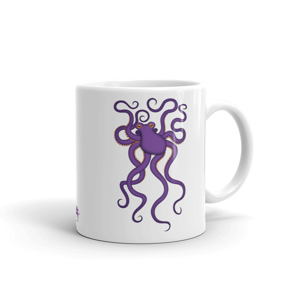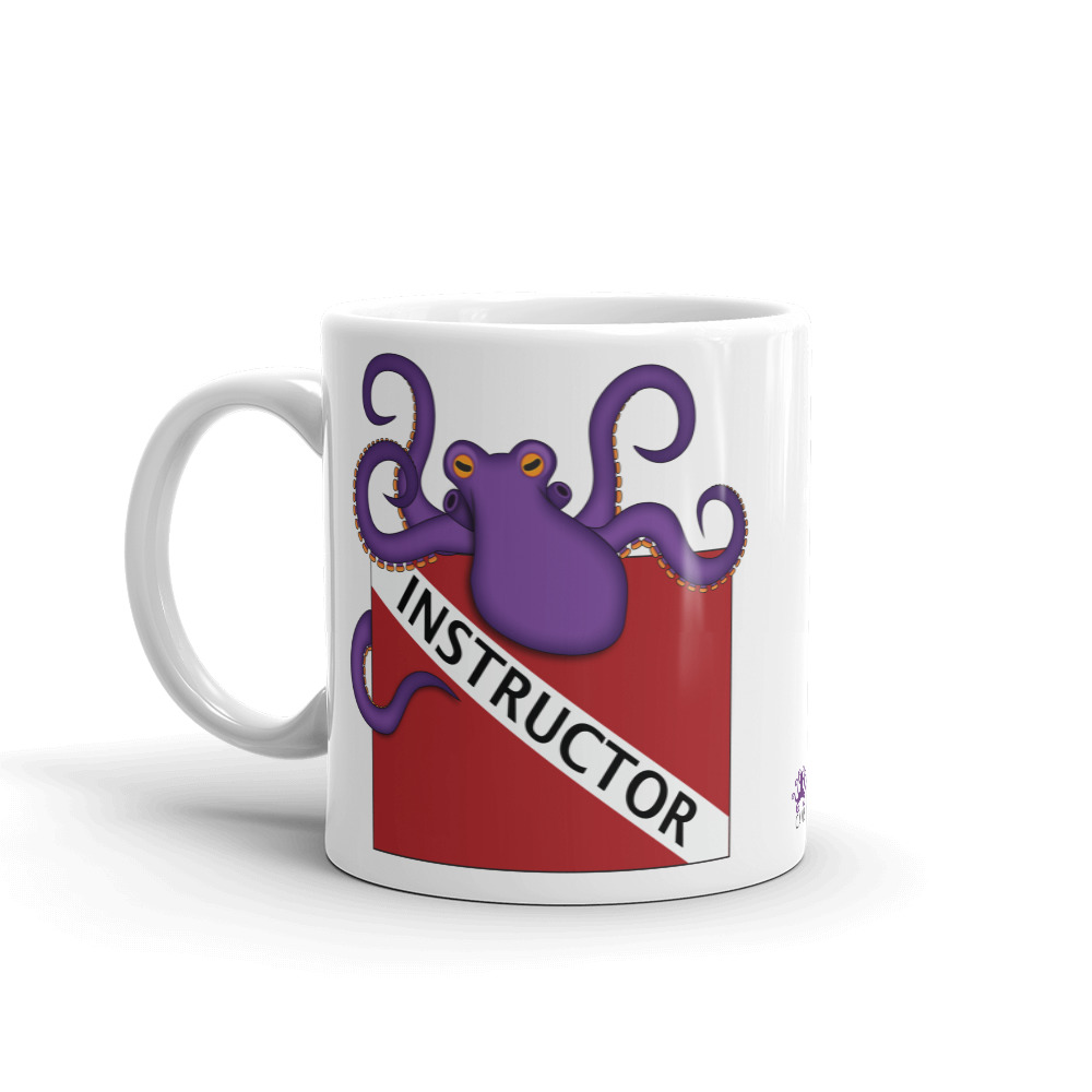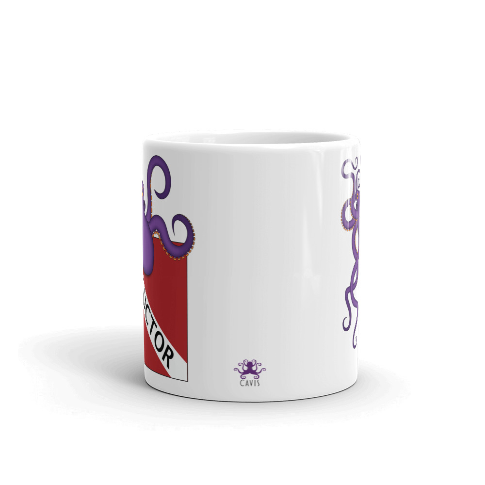 CAVIS Purple Octopus Dive Flag Mug, Instructor Coffee Cup for Scuba Divers