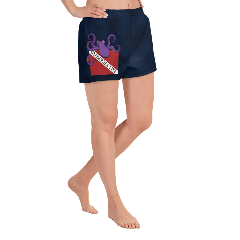CAVIS Purple Octopus Dive Flag Women’s Athletic Short Shorts, Undersea Life Scuba Diver Shorts