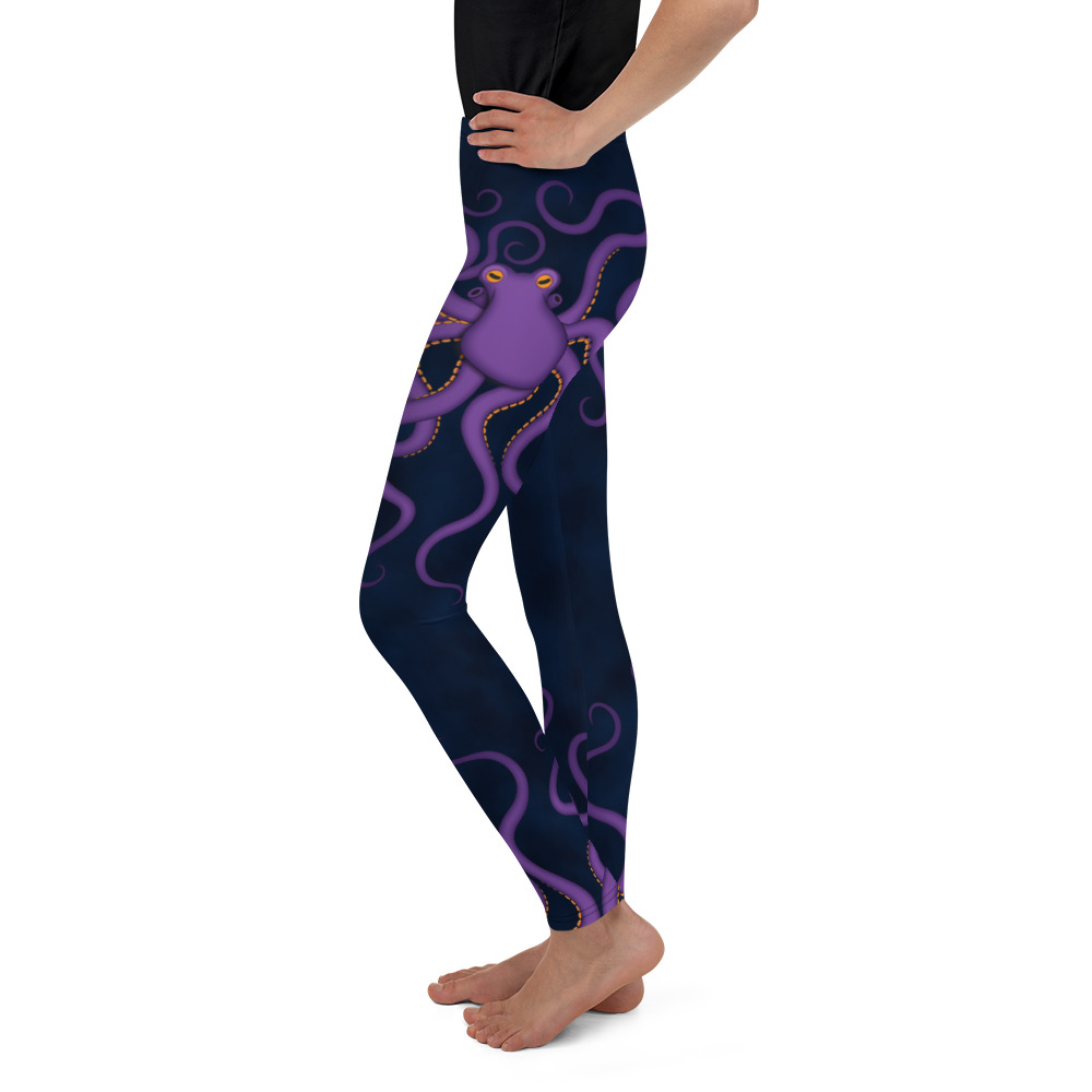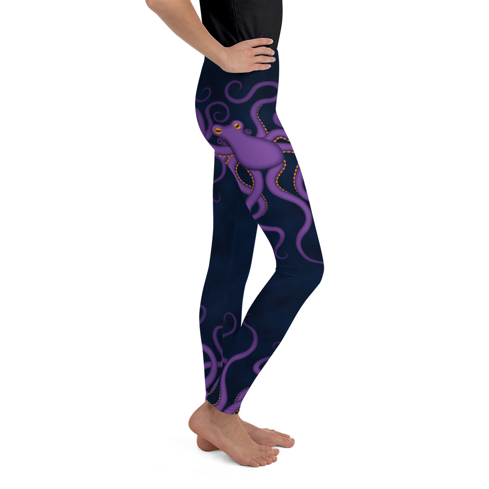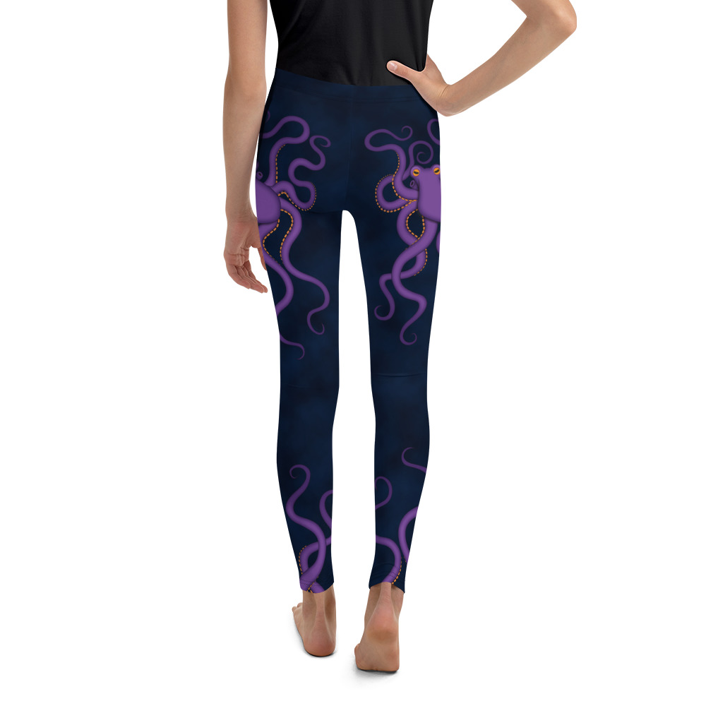 These purple octopus youth leggings are comfort personified. They’re elastic, soft, and have vibrant colors that are made to last. Each pair is precision-cut and hand-sewn to ensure the perfect fit.