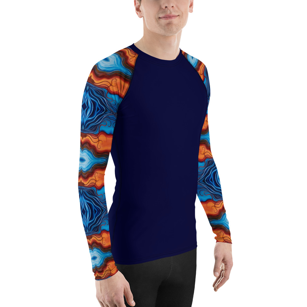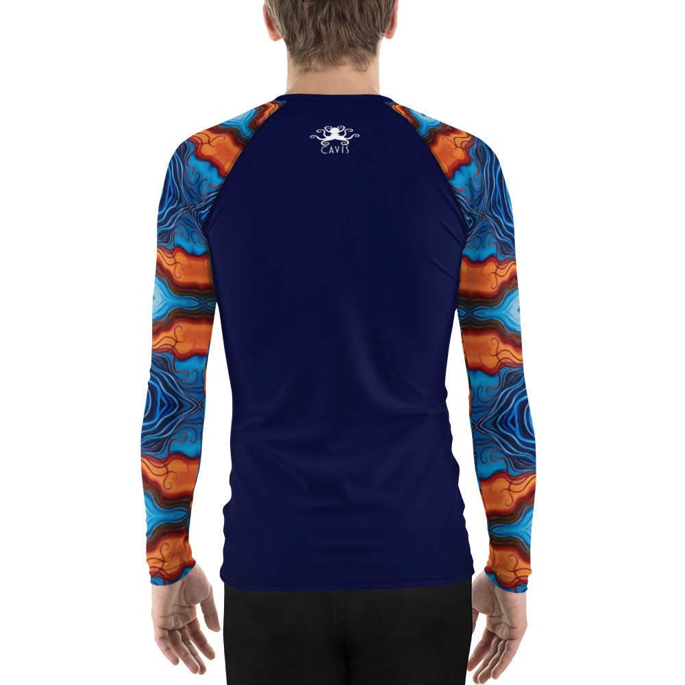 CAVIS Reborn Pattern Sleeve Men’s Rash Guard, Colorful Dive Skin Psychedelic Swim Shirt