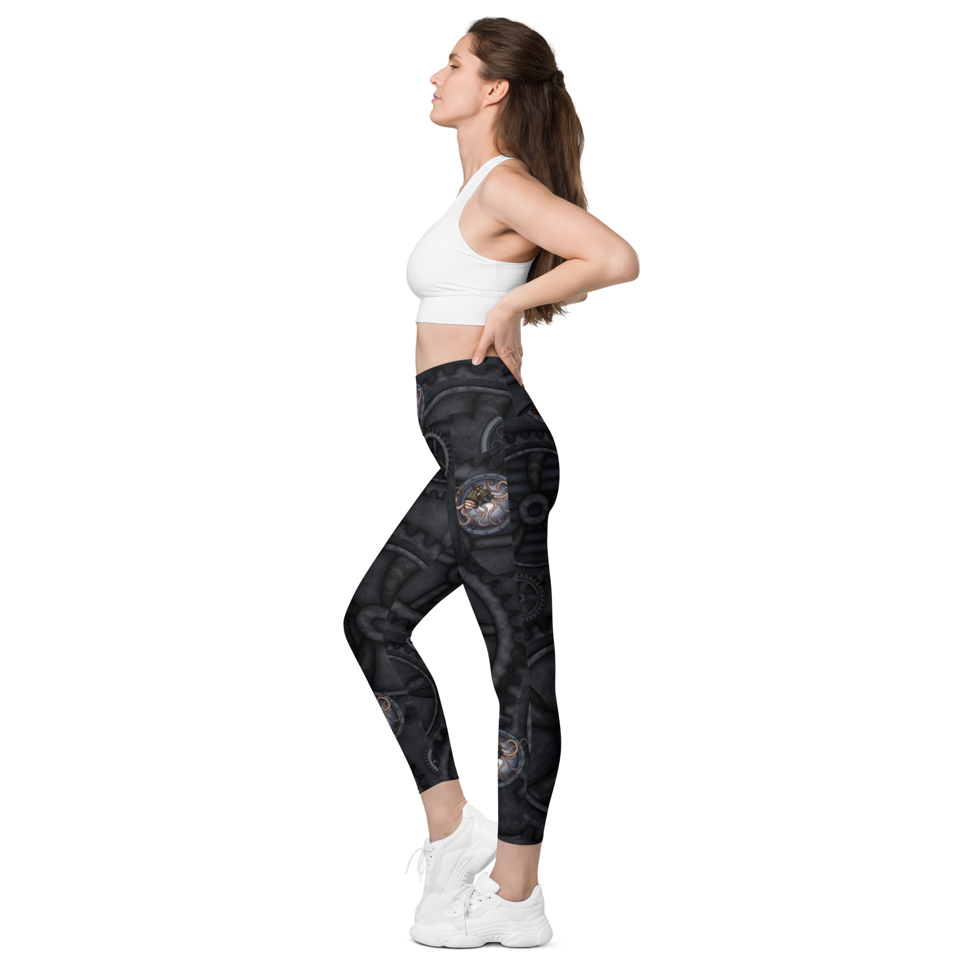 CAVIS Steampunk Octopus Leggings with Pocket, Alternative Sea Life Dive Skin Yoga Pants
