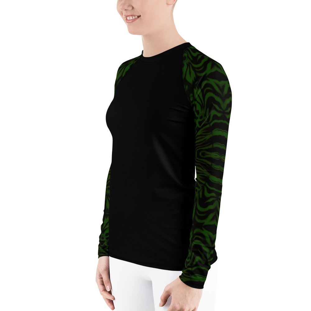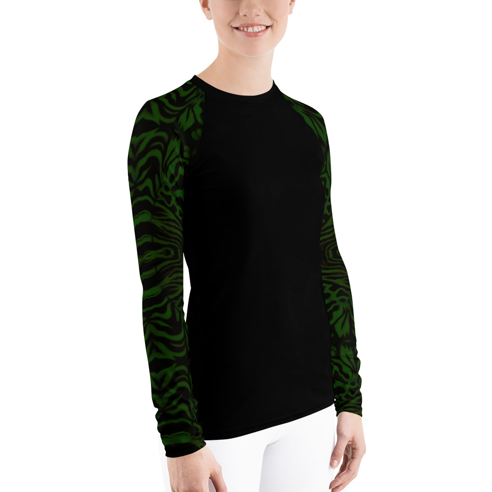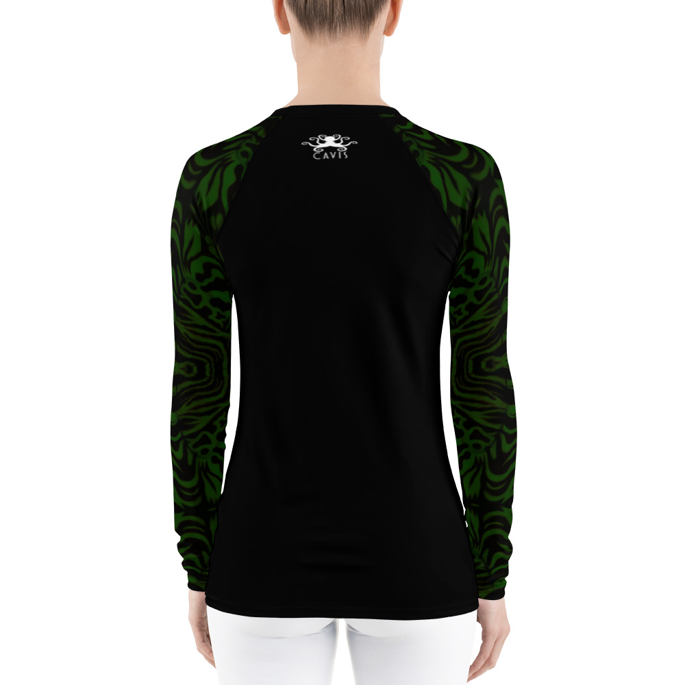CAVIS Wunderpus Octopus Pattern Sleeve Women’s Rash Guard, Alternative Green and Black Arm Swim Shirt