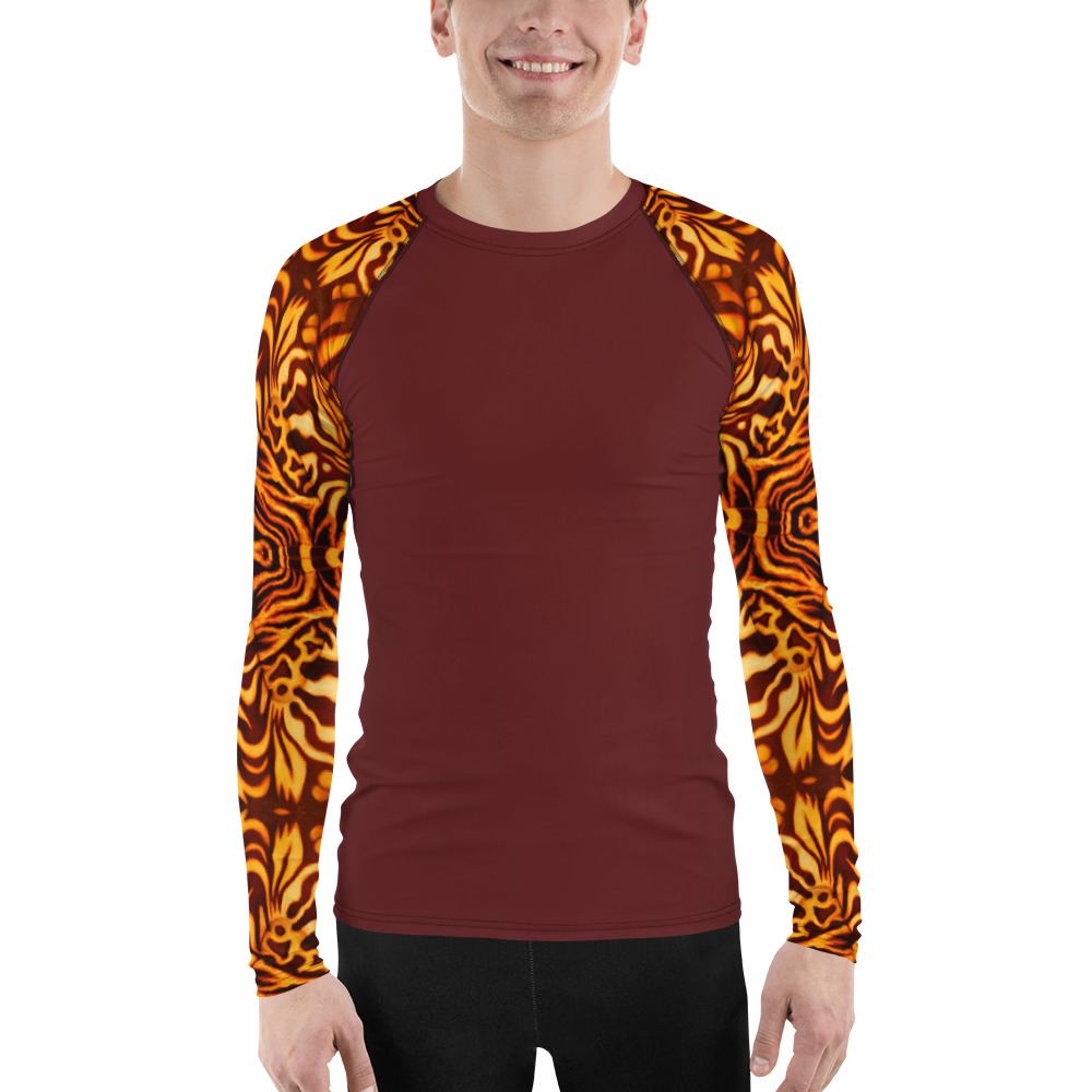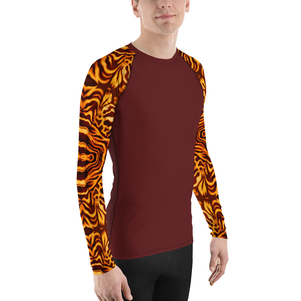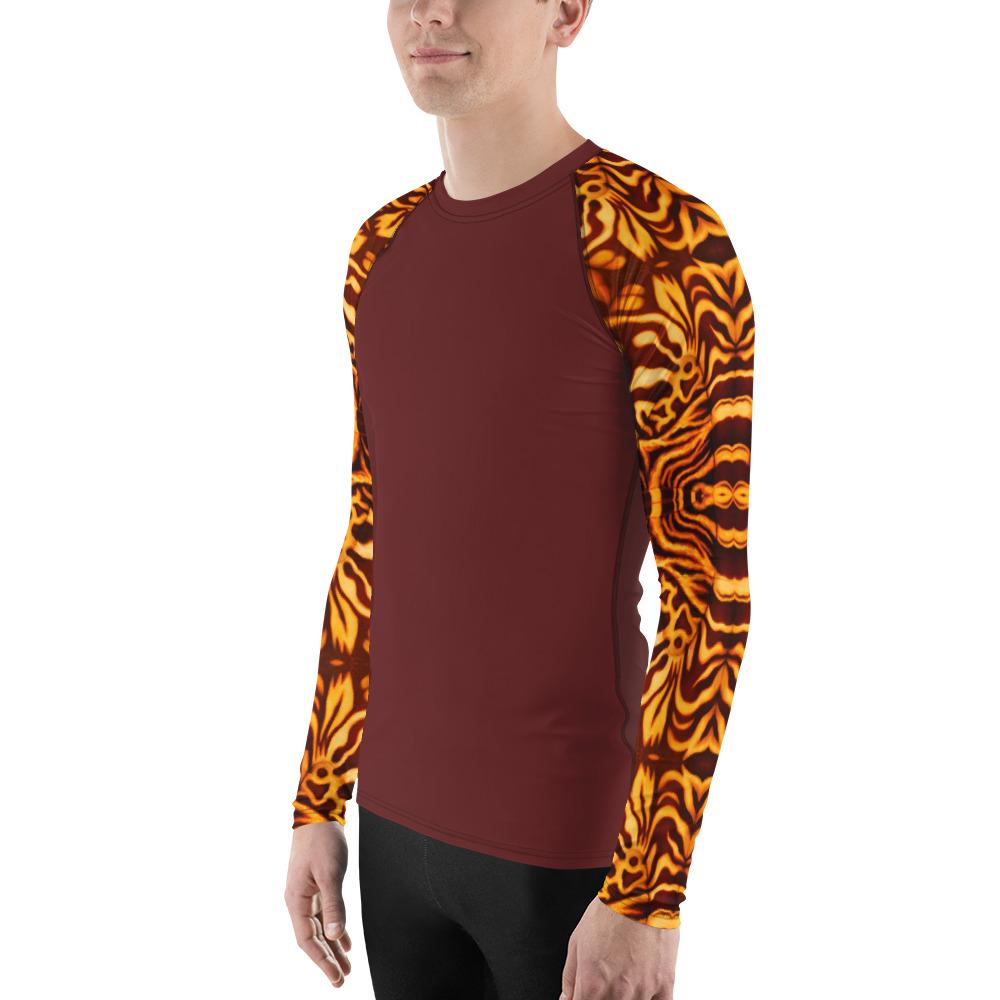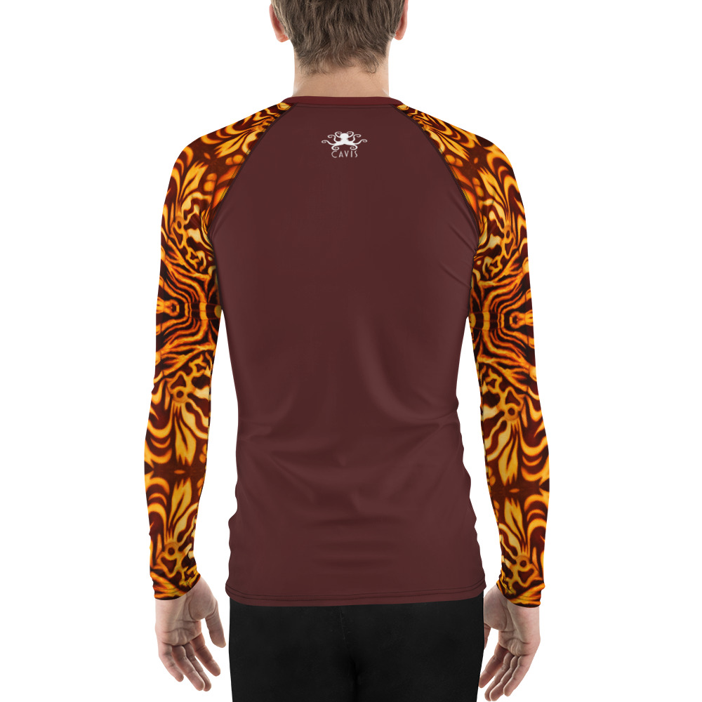CAVIS Wunderpus Octopus Pattern Sleeve Men’s Rash Guard, Alternative Orange and Yellow Arm Swim Shirt