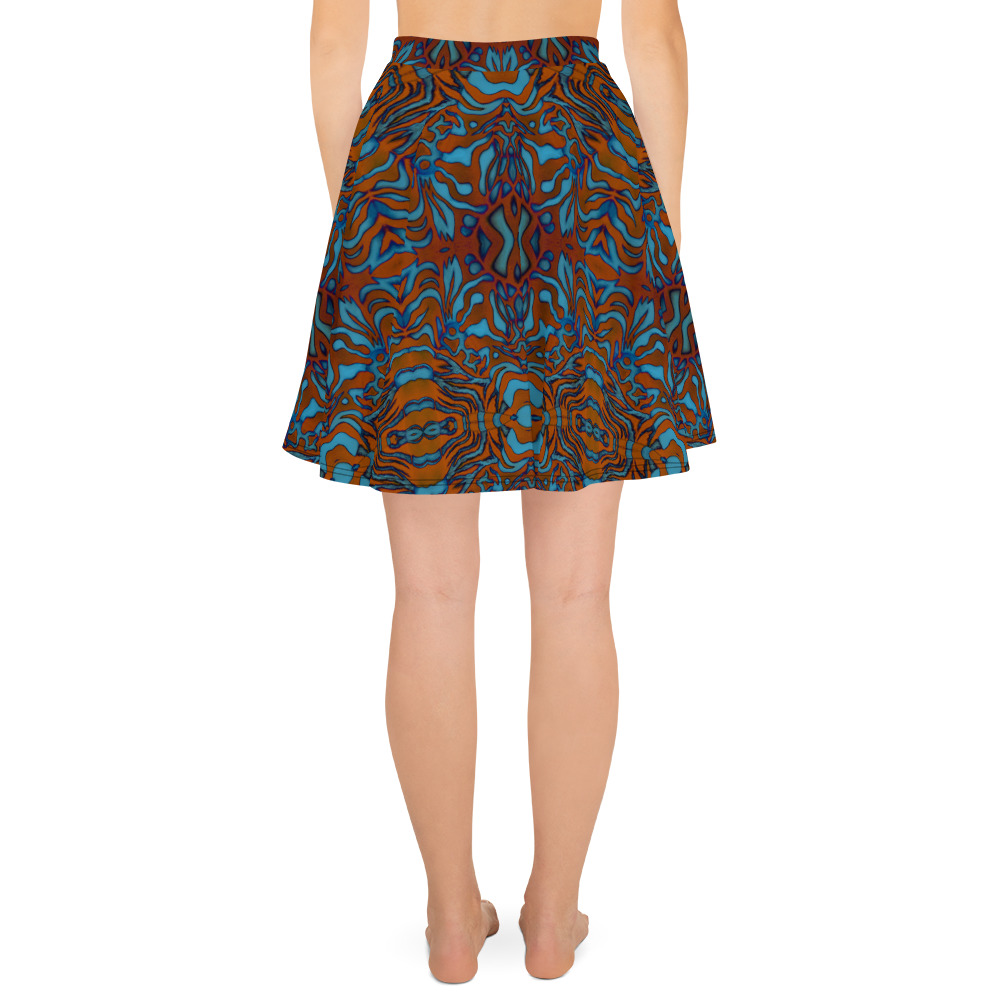CAVIS Wunderpus Skater Skirt, Orange Blue Octopus Pattern Flare Skirt