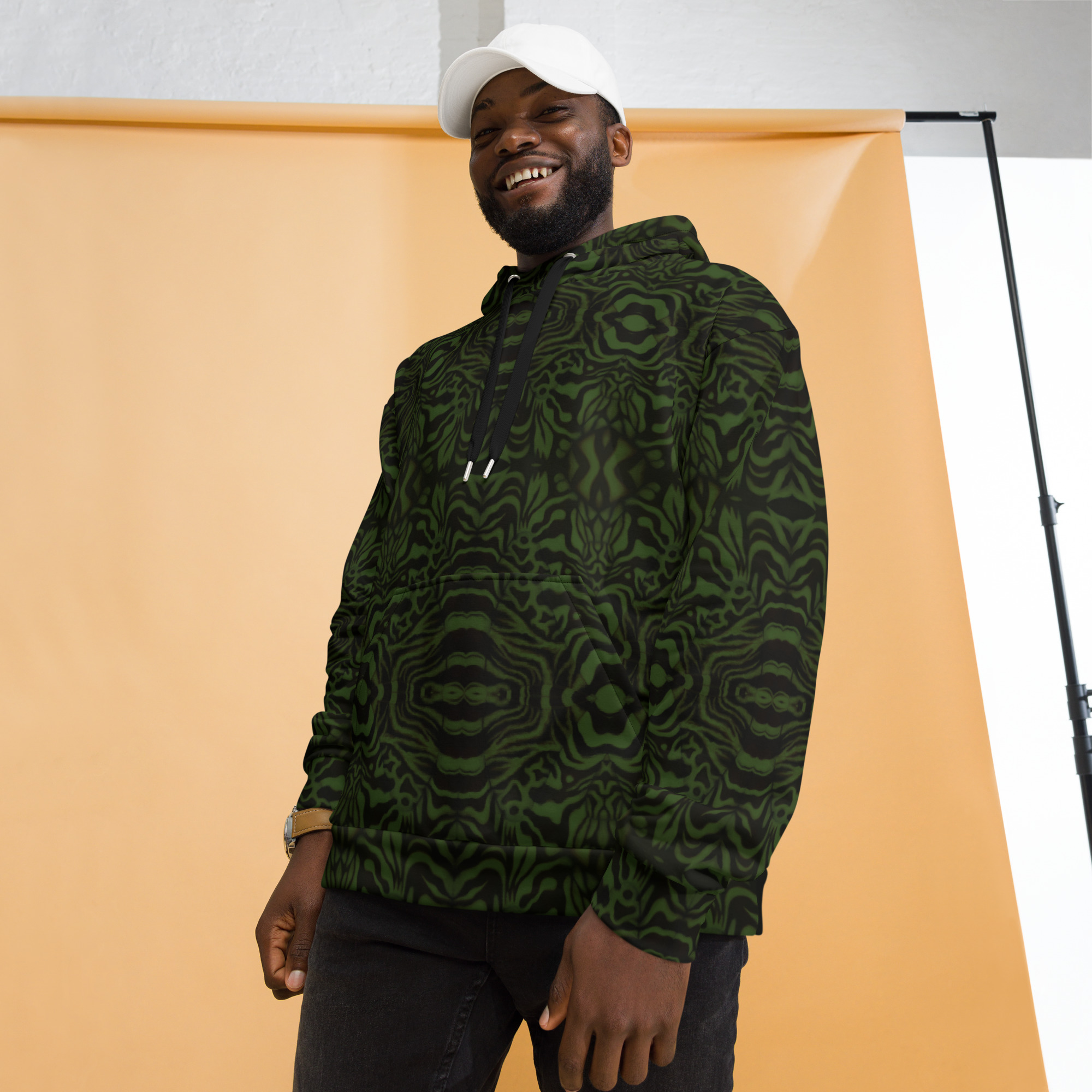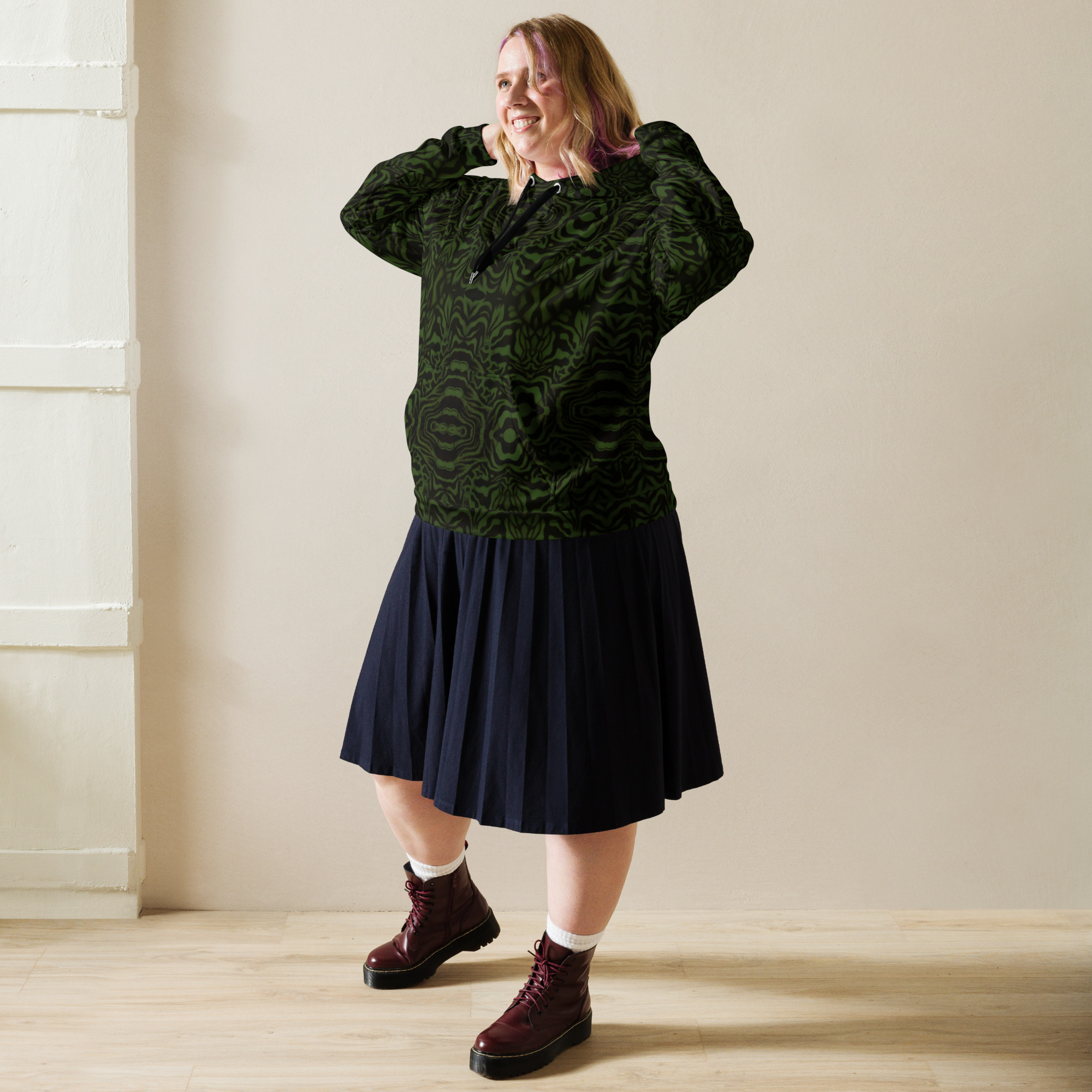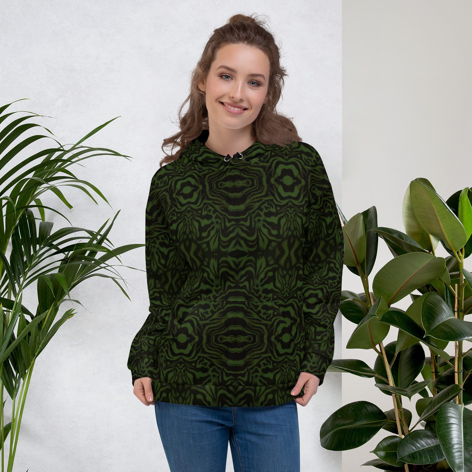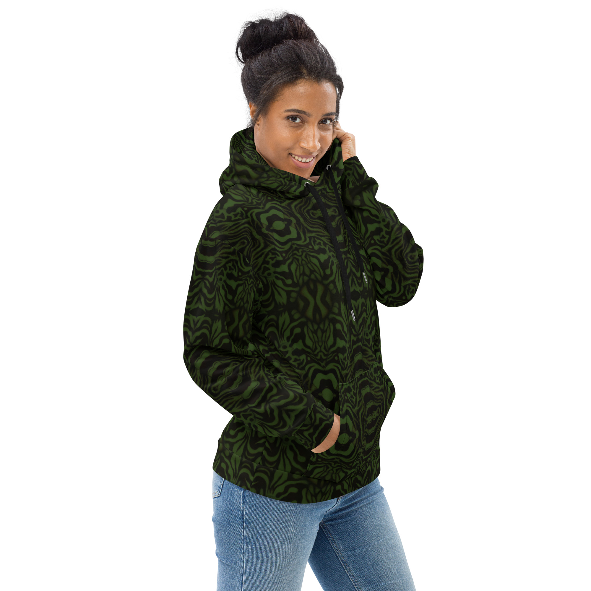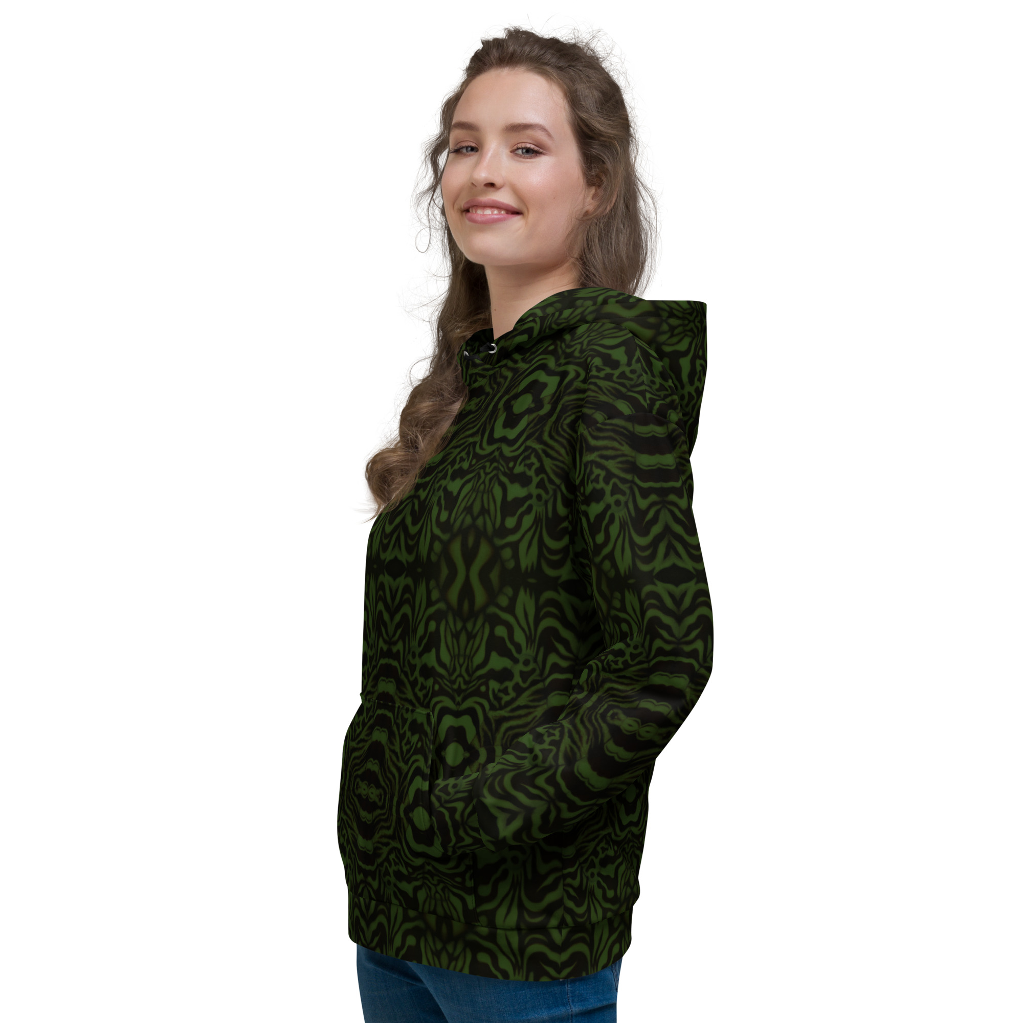 This comfy unisex hoodie has a soft outside with a vibrant print, and an even softer brushed fleece inside. The hoodie has a relaxed fit, and it’s perfect for wrapping yourself into on a chilly evening.